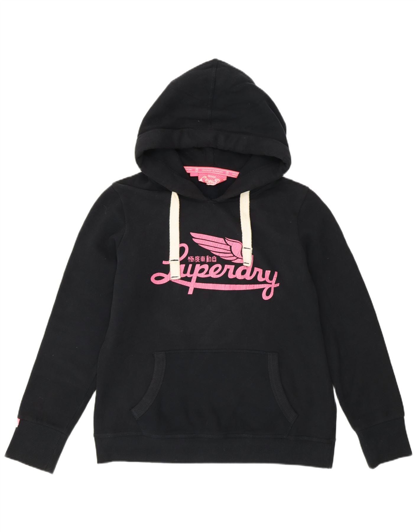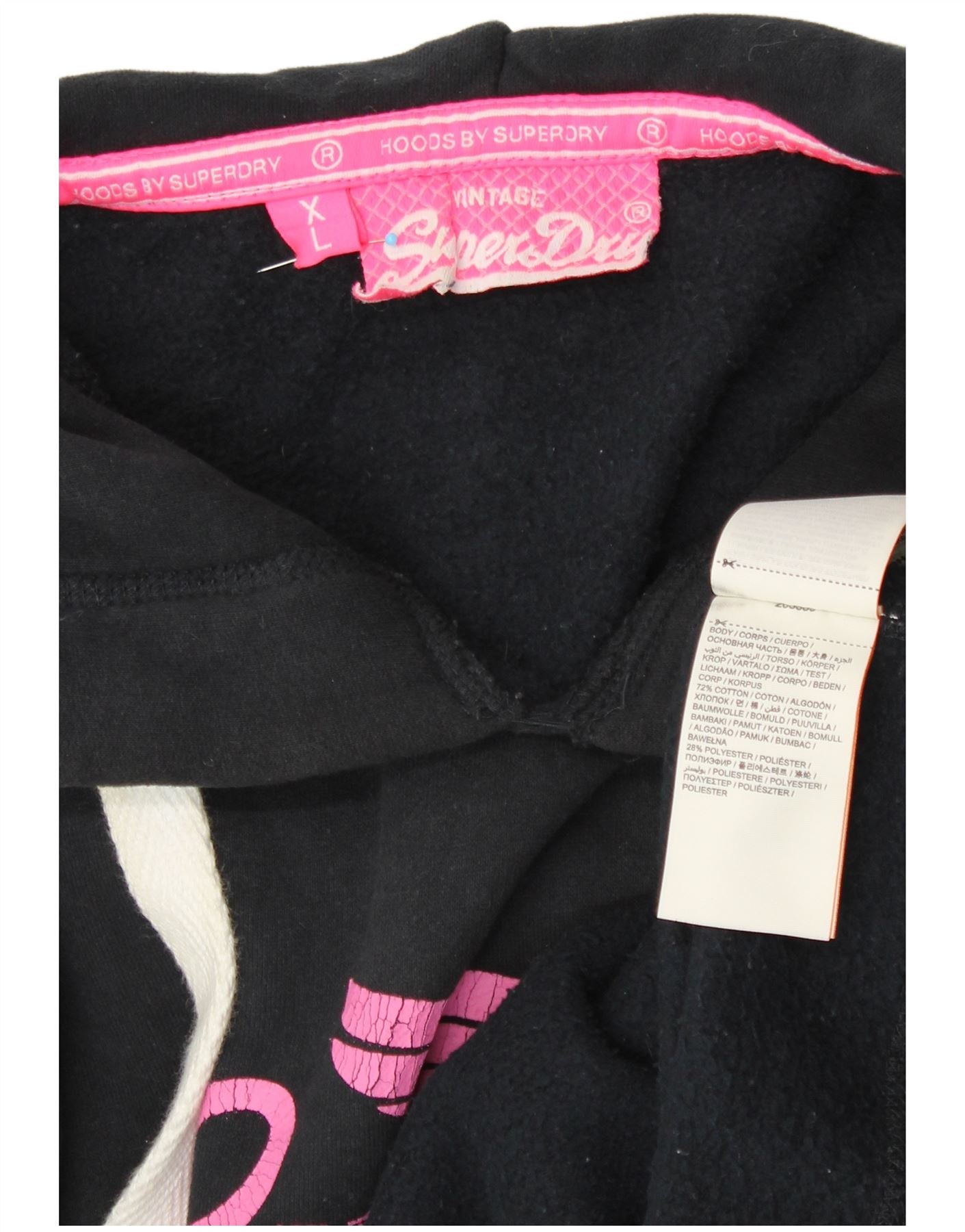 SUPERDRY Damski sweter z kapturem i grafiką UK 18 XL, czarny, bawełniany