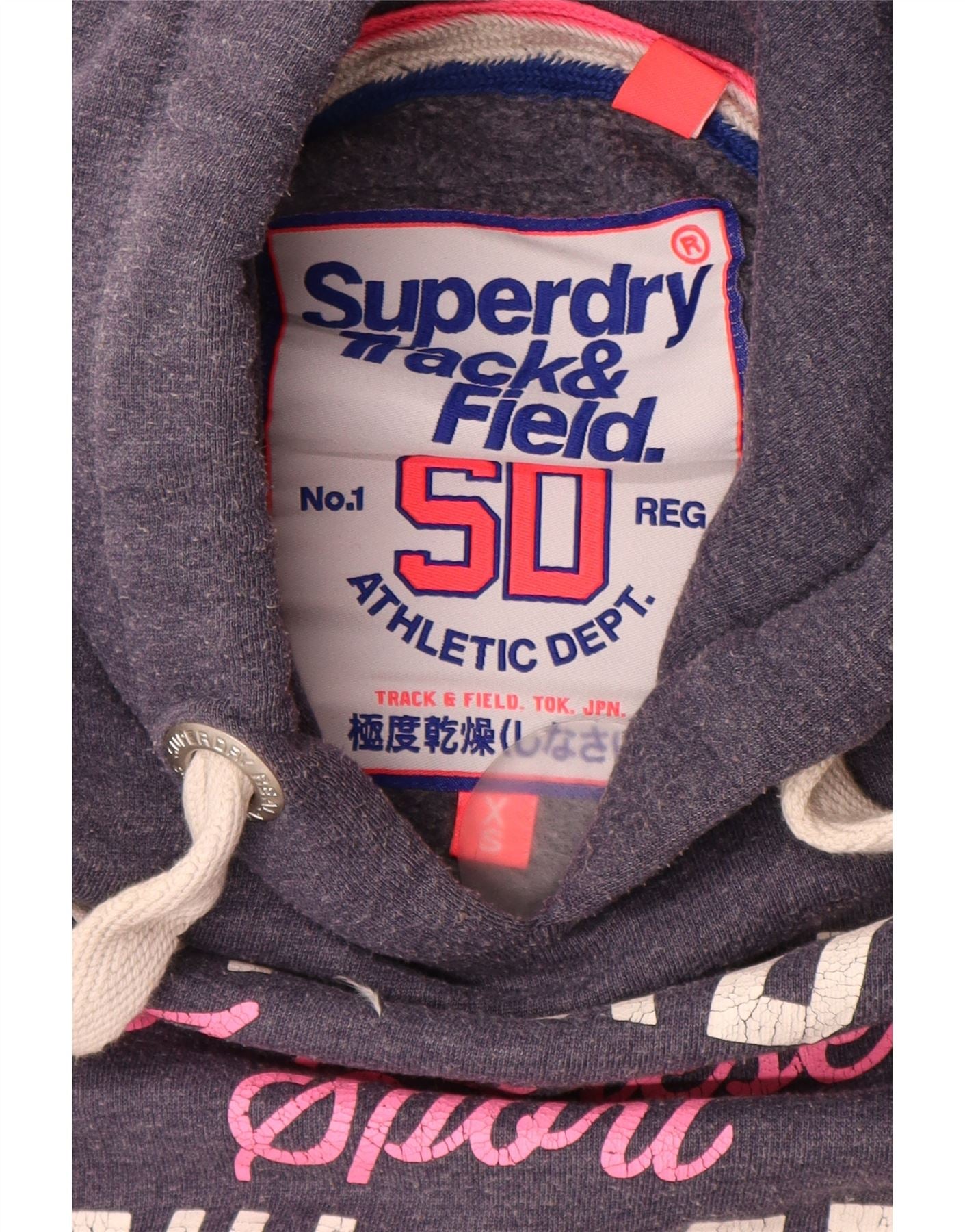 Damski sweter z kapturem i grafiką SUPERDRY UK 6 XS, granatowy, bawełniany