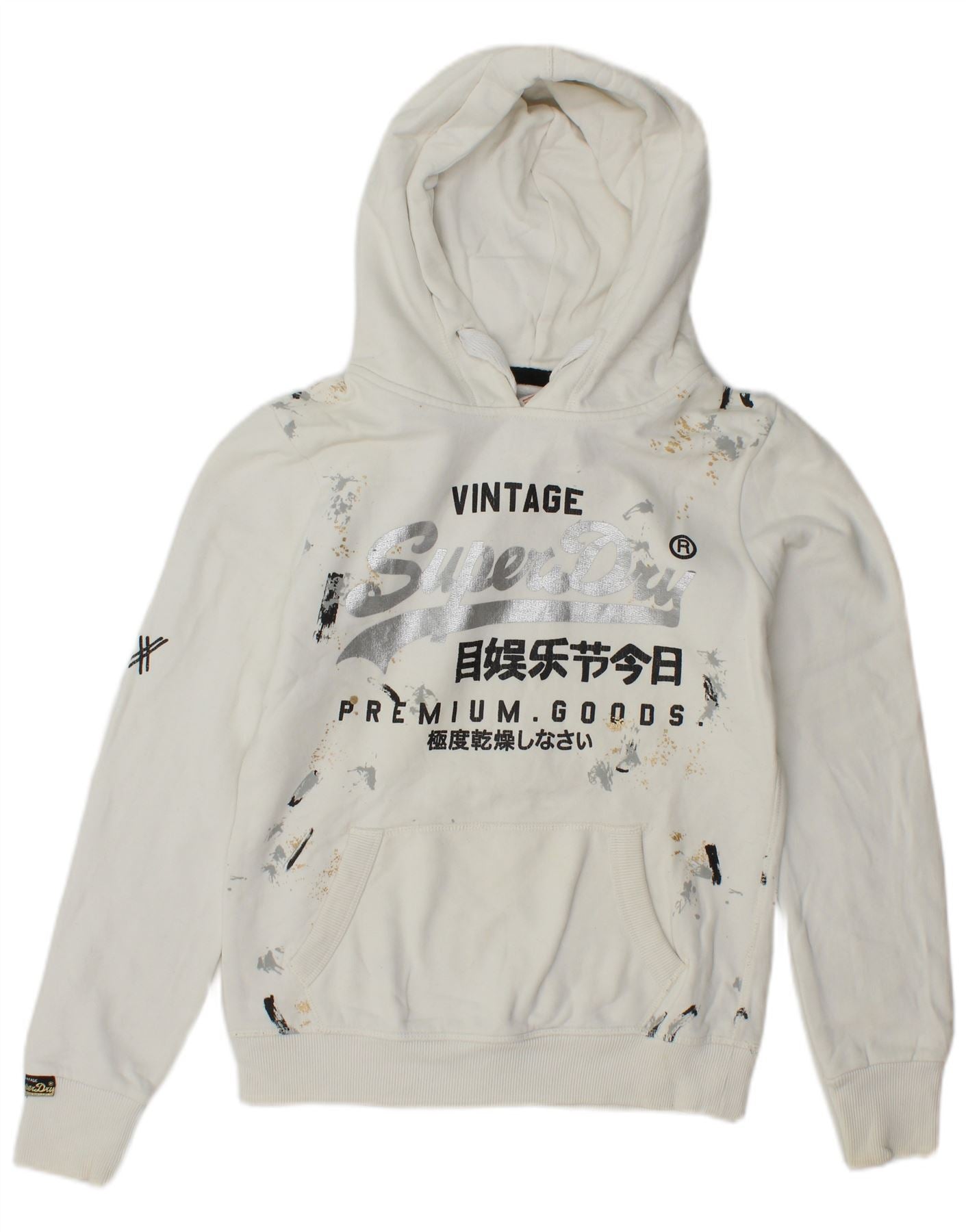 Damski sweter z kapturem i grafiką SUPERDRY UK 6 XS, biała bawełna
