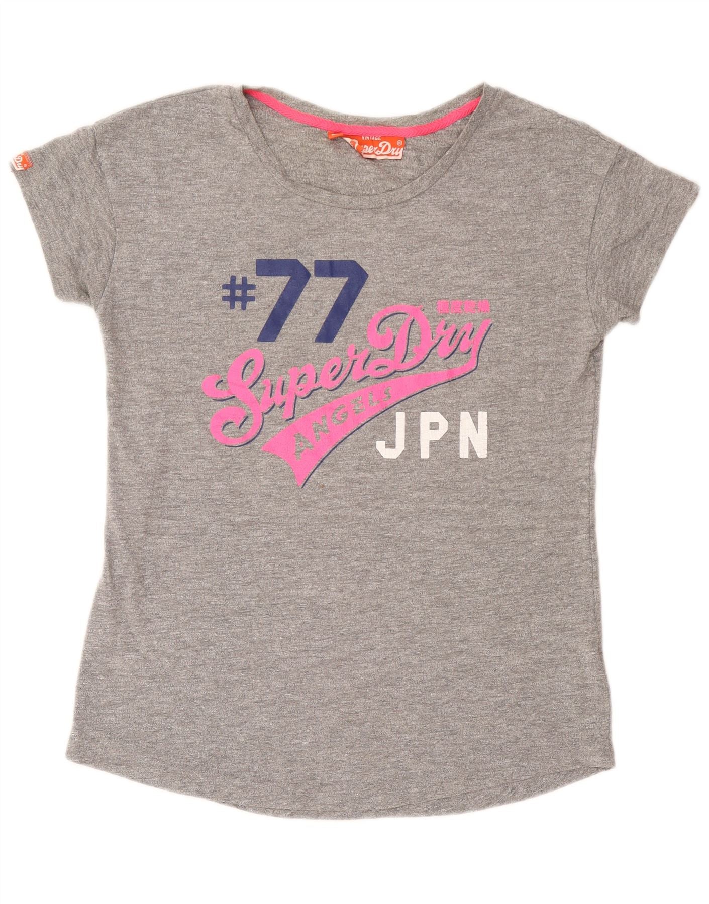 Damski T-shirt z grafiką Superdry Top UK 14, duży, szary, bawełniany