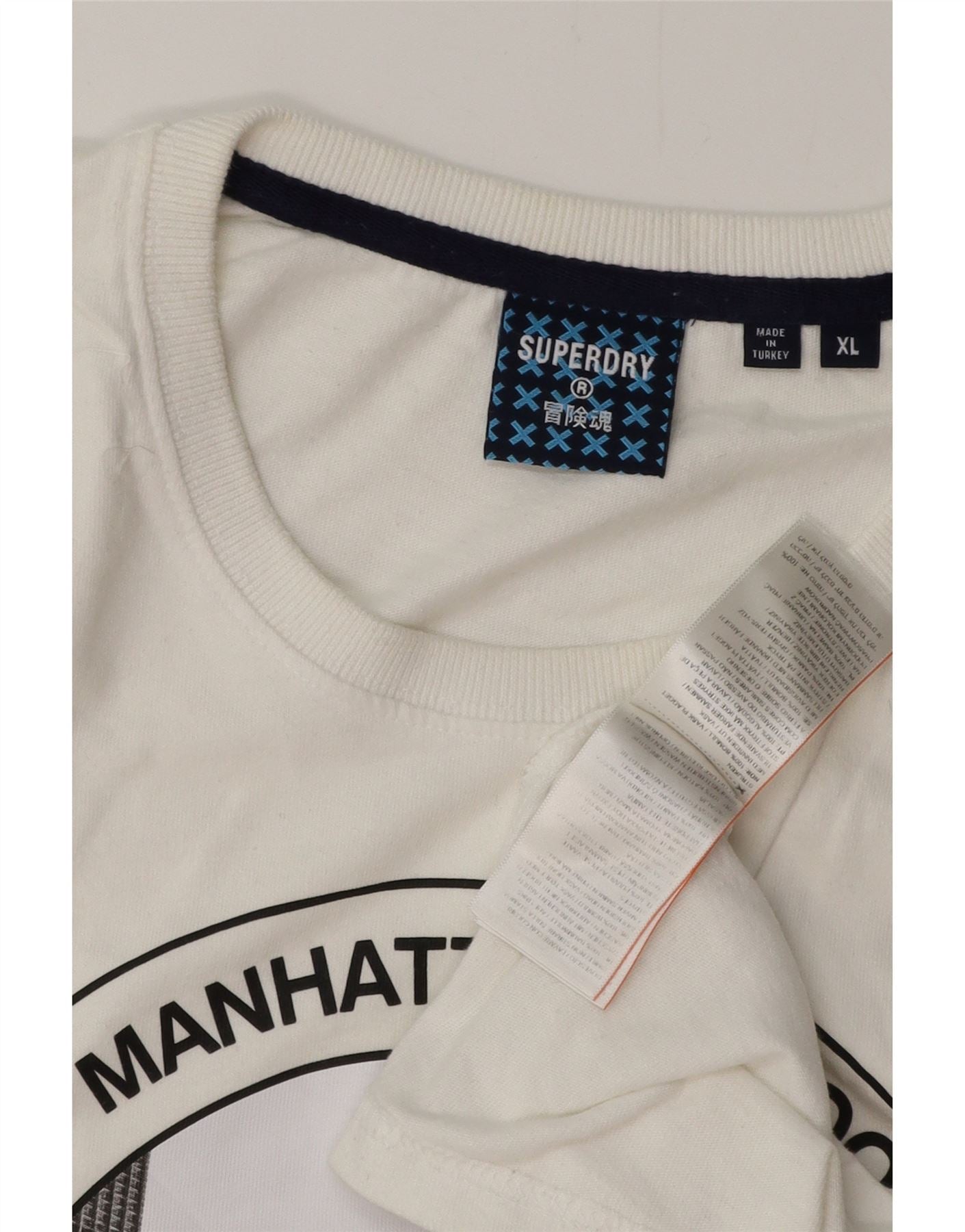 Damska koszulka z grafiką SUPERDRY Top UK 18 XL, biała bawełna