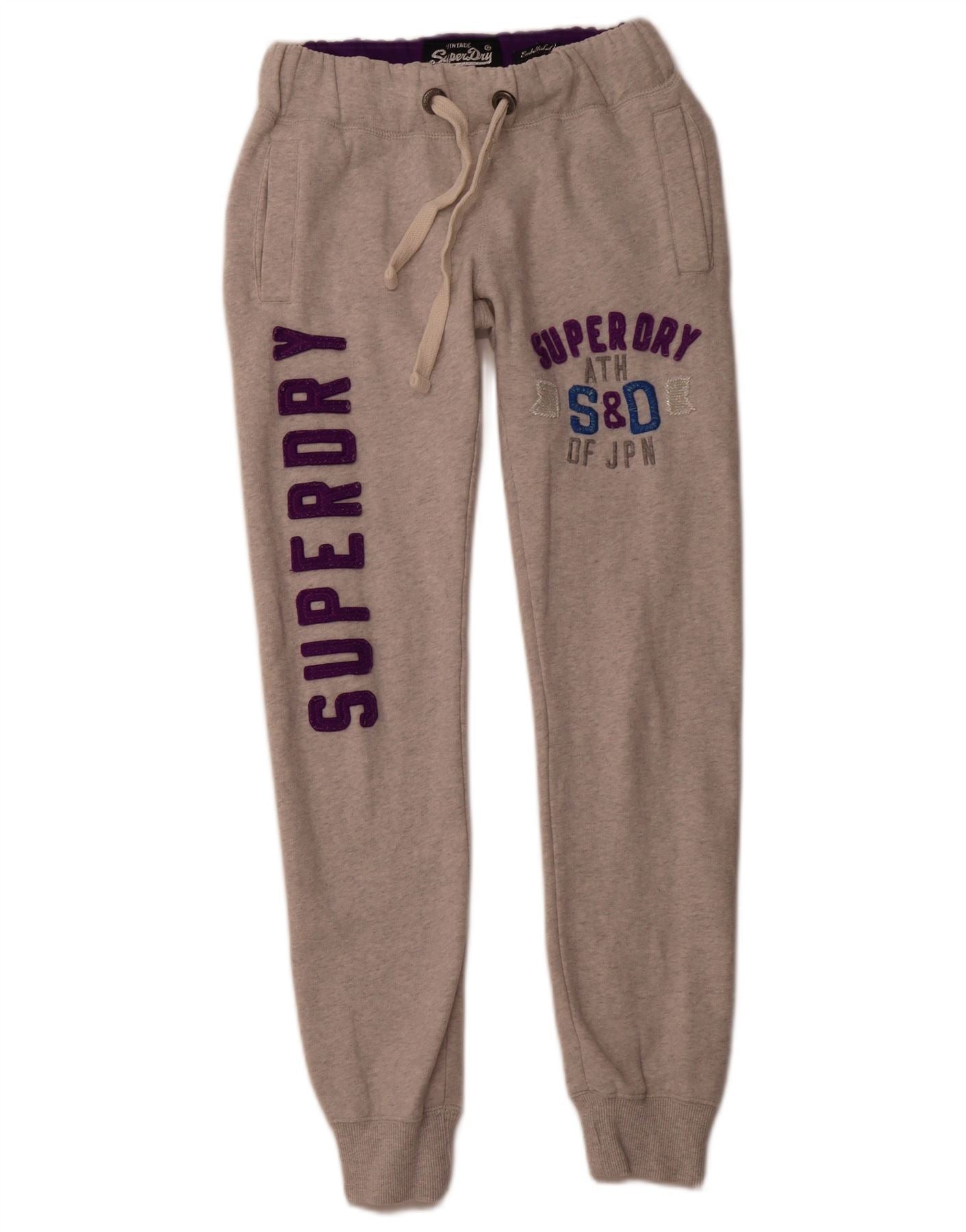Damskie spodnie dresowe SUPERDRY z grafiką Joggers UK 4 XS Szara bawełna