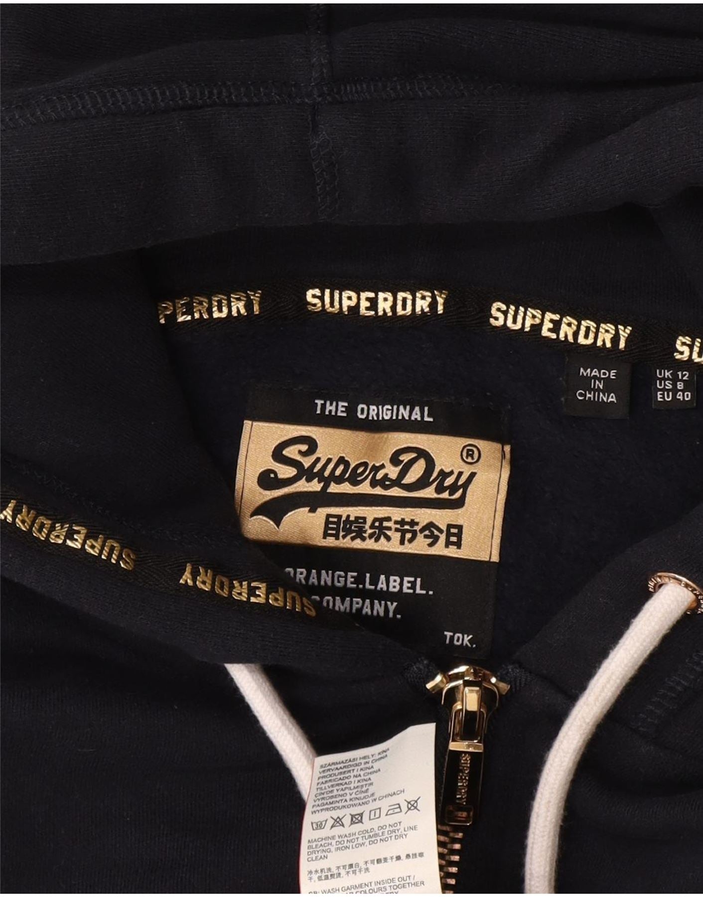 Damski sweter z kapturem Superdry z grafiką i zamkiem błyskawicznym UK 12, średni granatowy, bawełniany