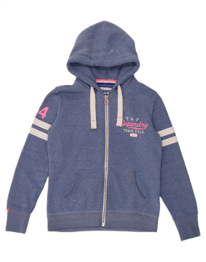 SUPERDRY Womens Graphic Zip Hoodie Sweater UK 14 Large Blue Flecked