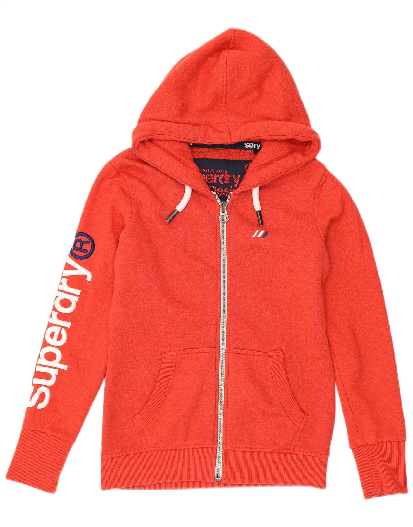 SUPERDRY Damski sweter z kapturem i zamkiem błyskawicznym UK 8, mały, pomarańczowy, bawełniany