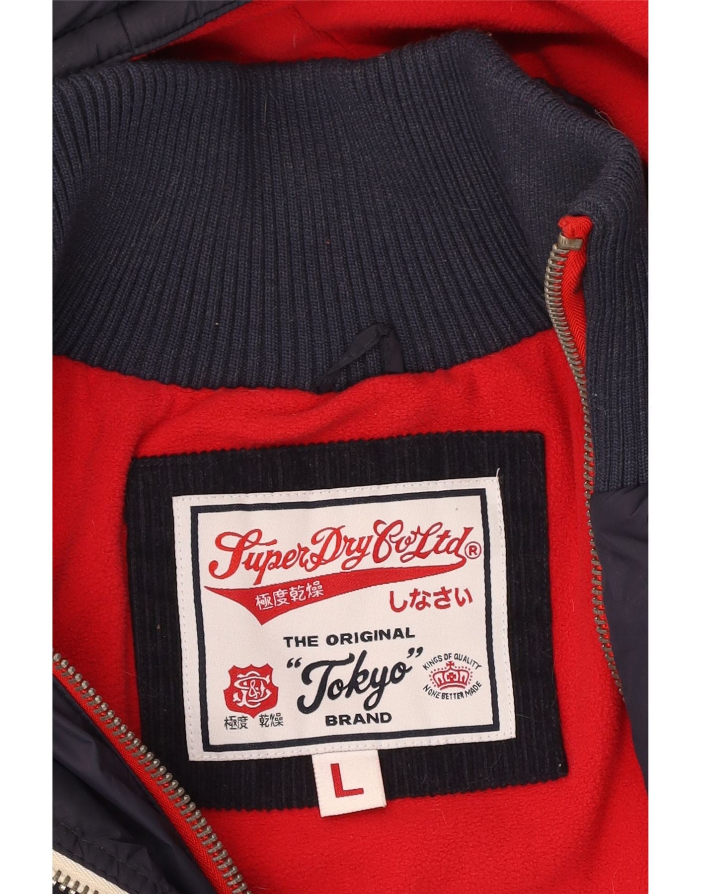 SUPERDRY Womens Hooded Padded Gilet UK 16 Large Navy Blue Polyester