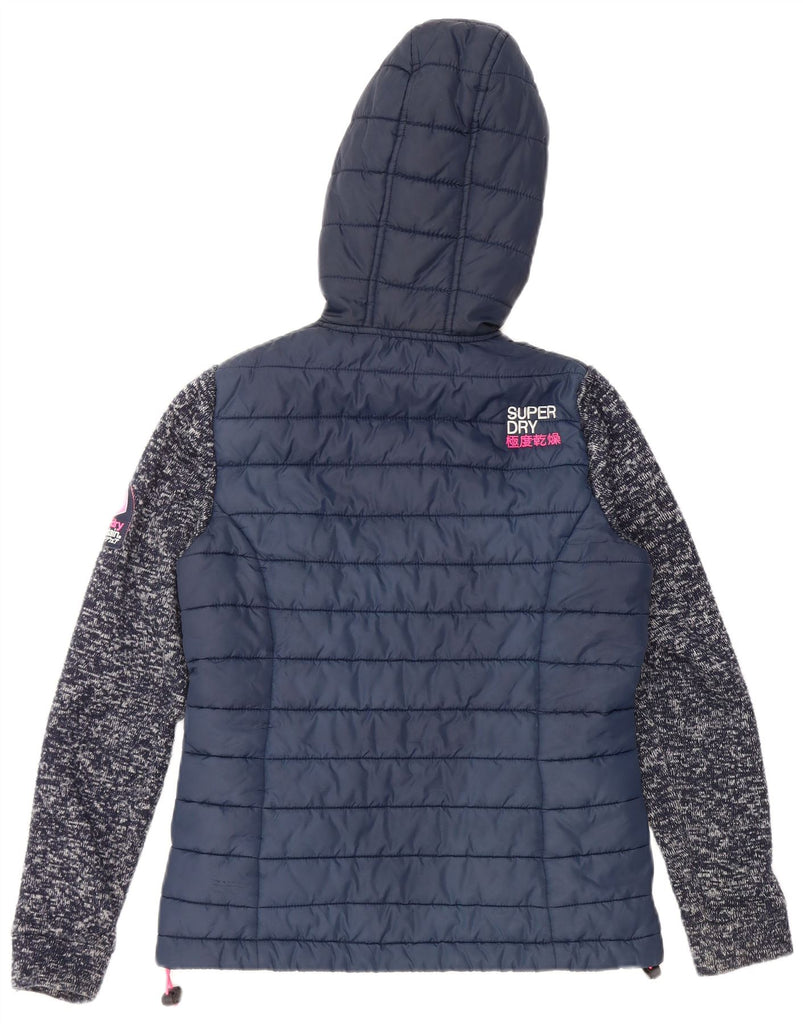 SUPERDRY Womens Hooded Padded Jacket UK 10 Small Navy Blue Flecked