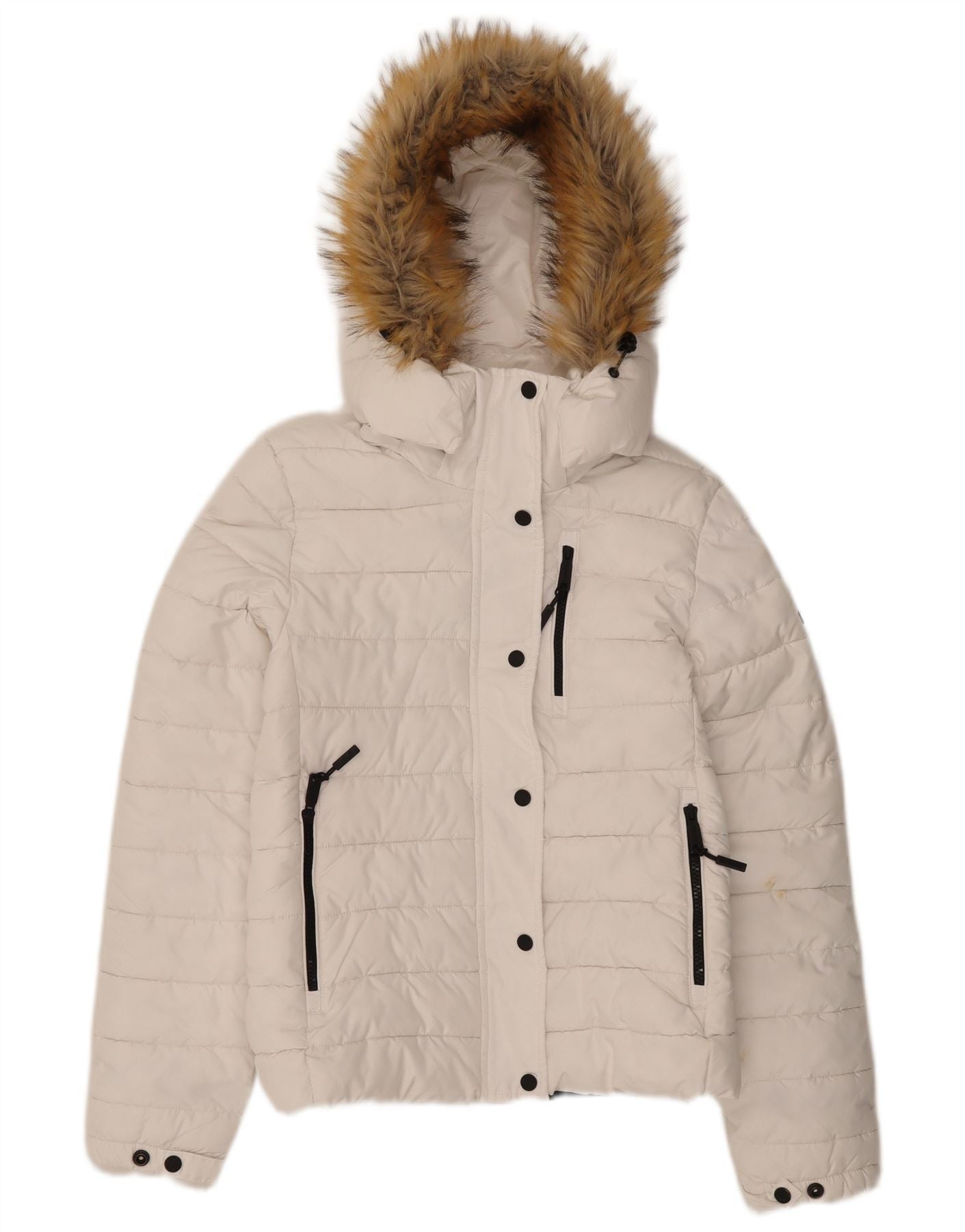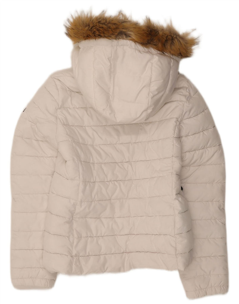 SUPERDRY Womens Hooded Padded Jacket UK 10 Small White Polyester