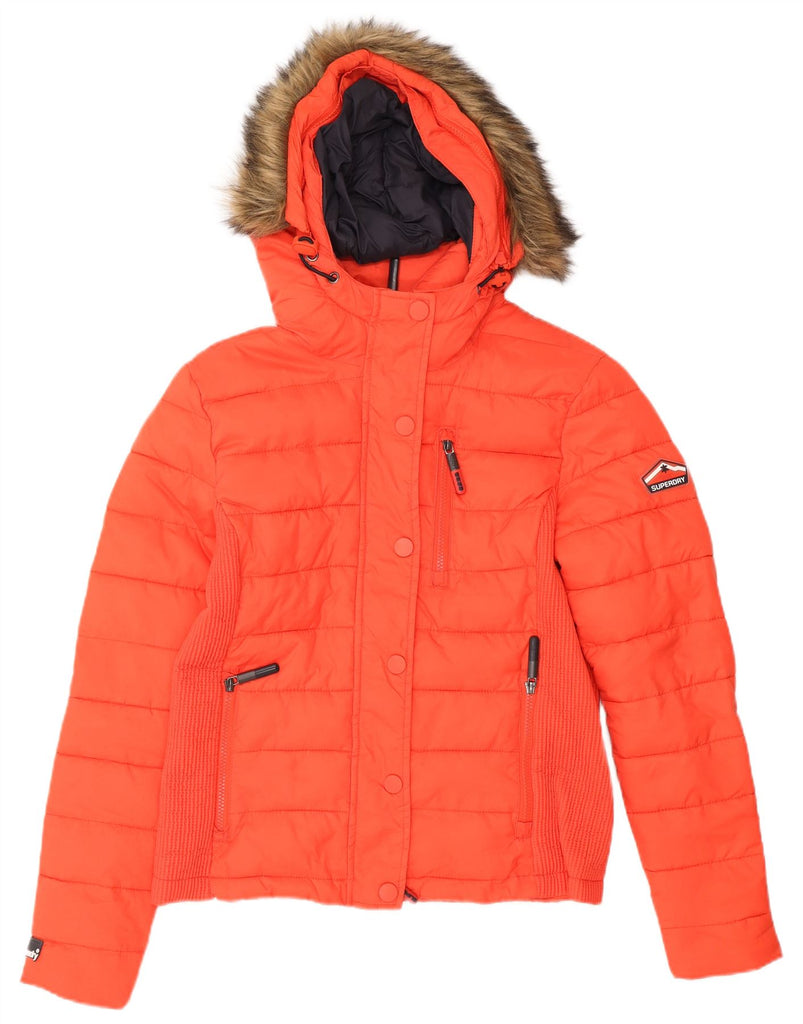 SUPERDRY Womens Hooded Padded Jacket UK 14 Large Orange Nylon