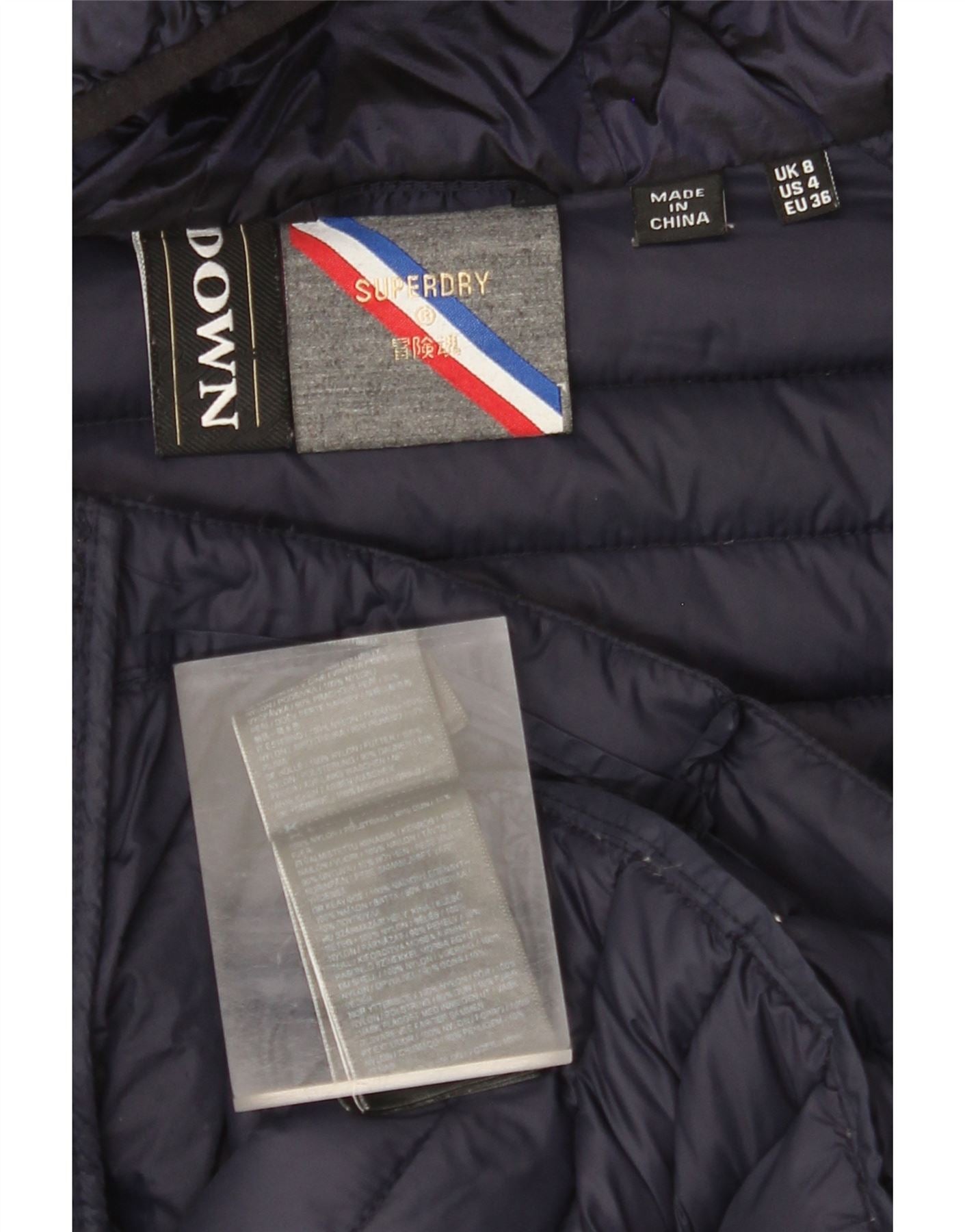 Damska ocieplana kurtka SUPERDRY z kapturem UK 8, mała, granatowa, nylonowa