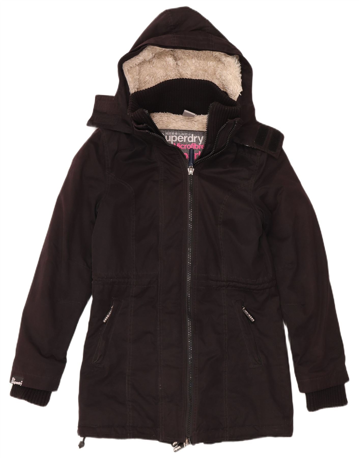 SUPERDRY Womens Hooded Parka Jacket UK 10 Small Black Polyester