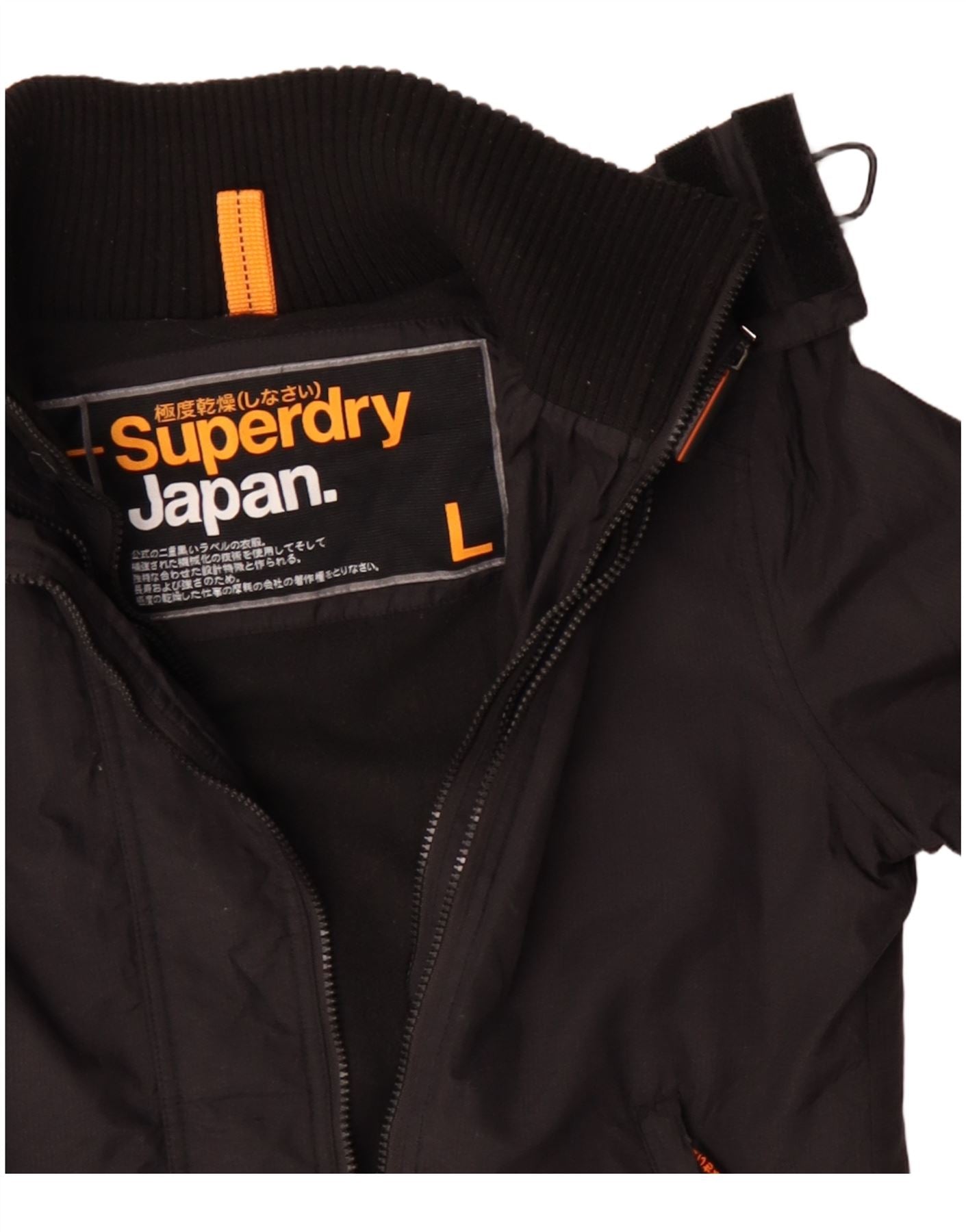 Damska kurtka wiatrówka z kapturem Superdry UK 16, duża, czarna, poliester
