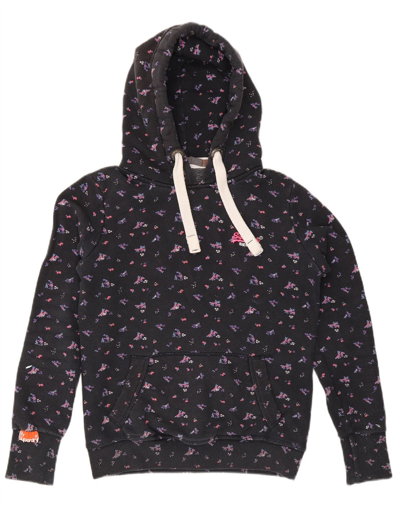 SUPERDRY Womens Hoodie Jumper UK 10 Small Navy Blue Floral Cotton