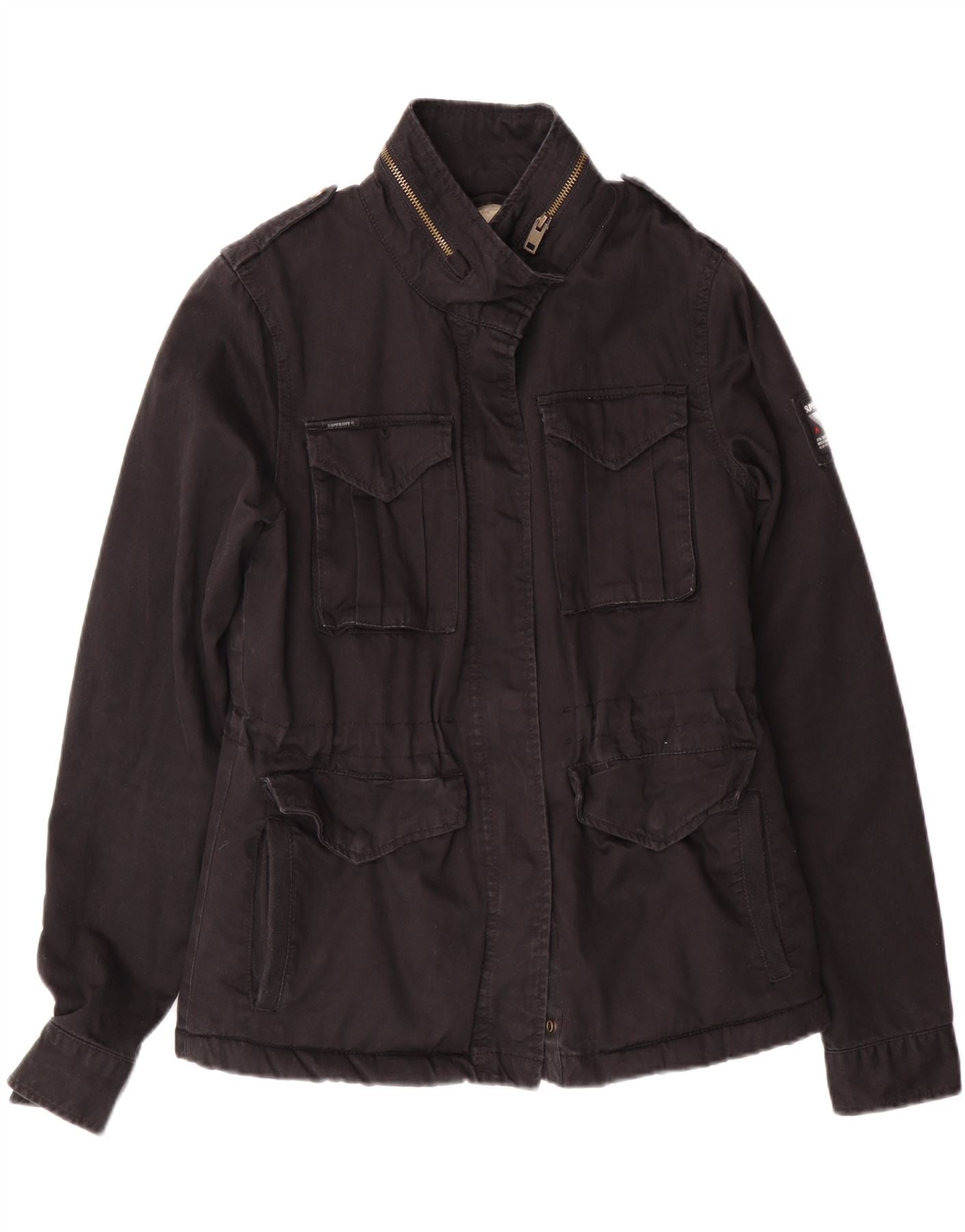 SUPERDRY Damska kurtka wojskowa UK 10, mała, czarna, bawełniana