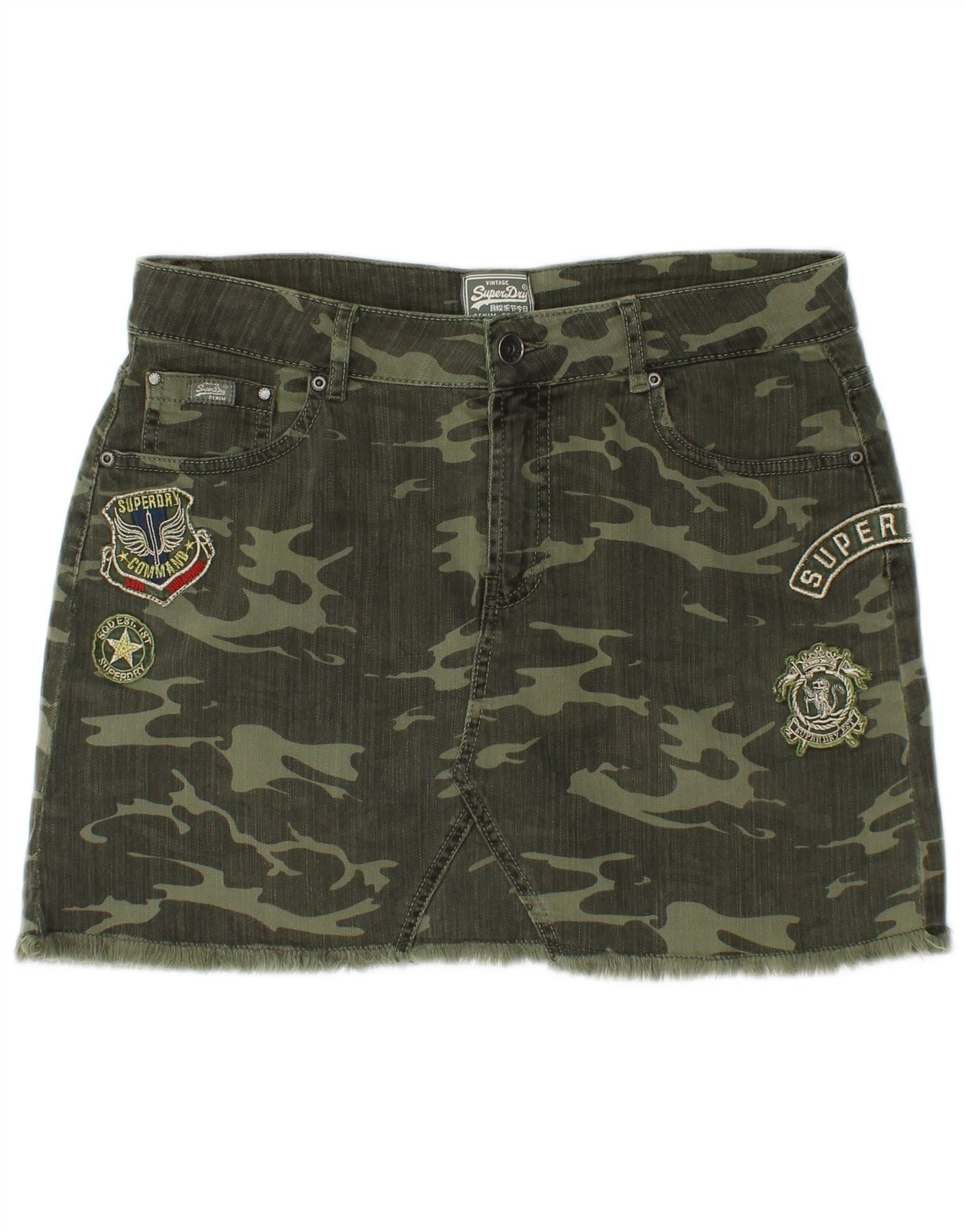 SUPERDRY Damska mini spódniczka dżinsowa, średni W30, kamuflaż khaki