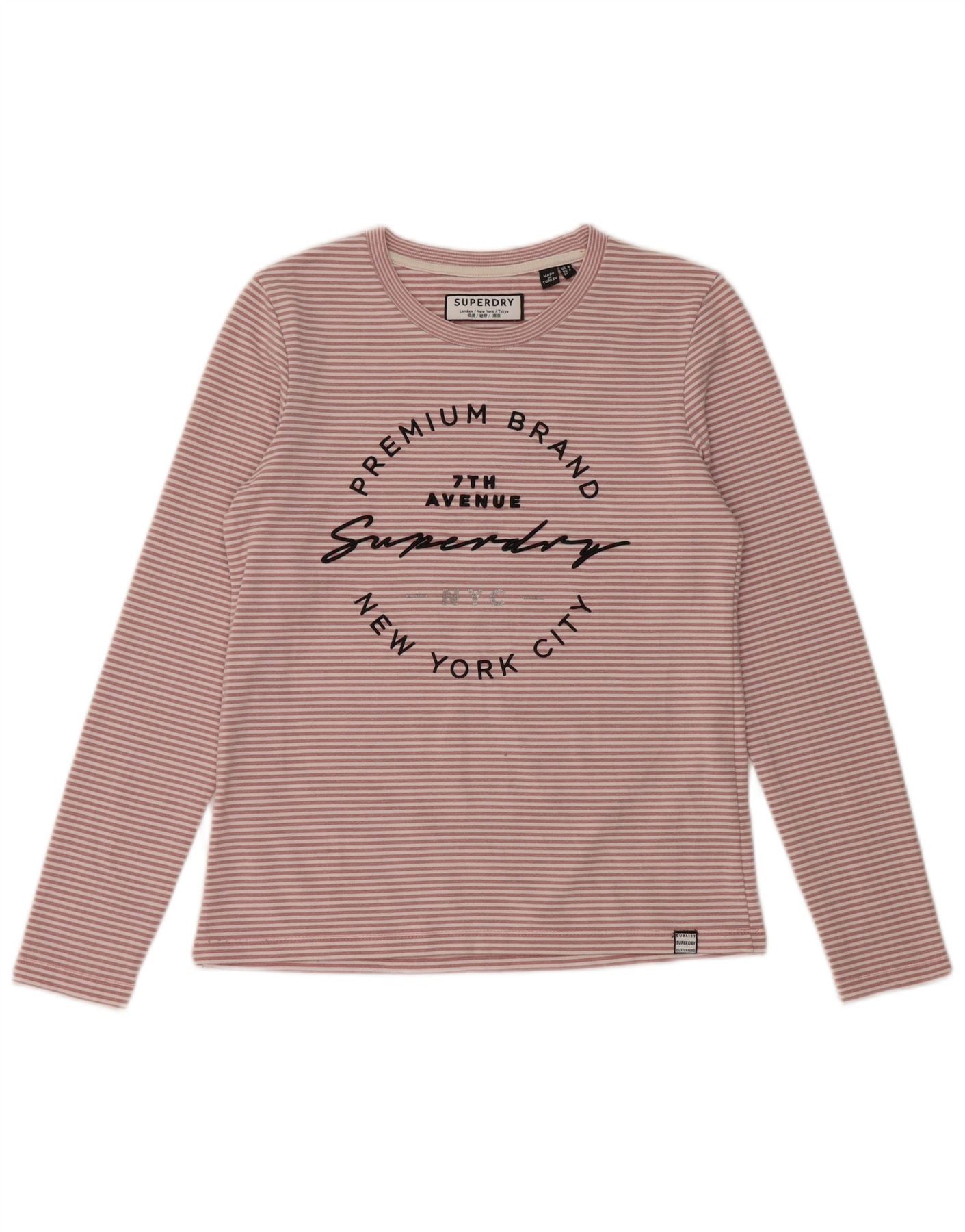 SUPERDRY Damski top z grafiką New York City z długim rękawem, UK 8, mały róż