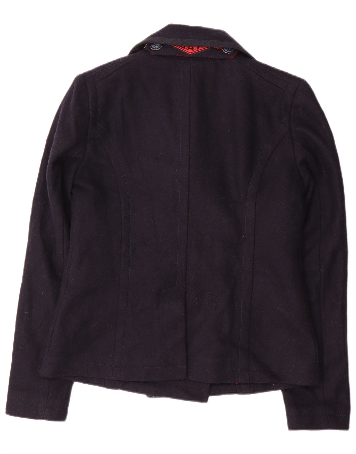 SUPERDRY damski płaszcz grochowy UK 14 średni granatowy wełniany
