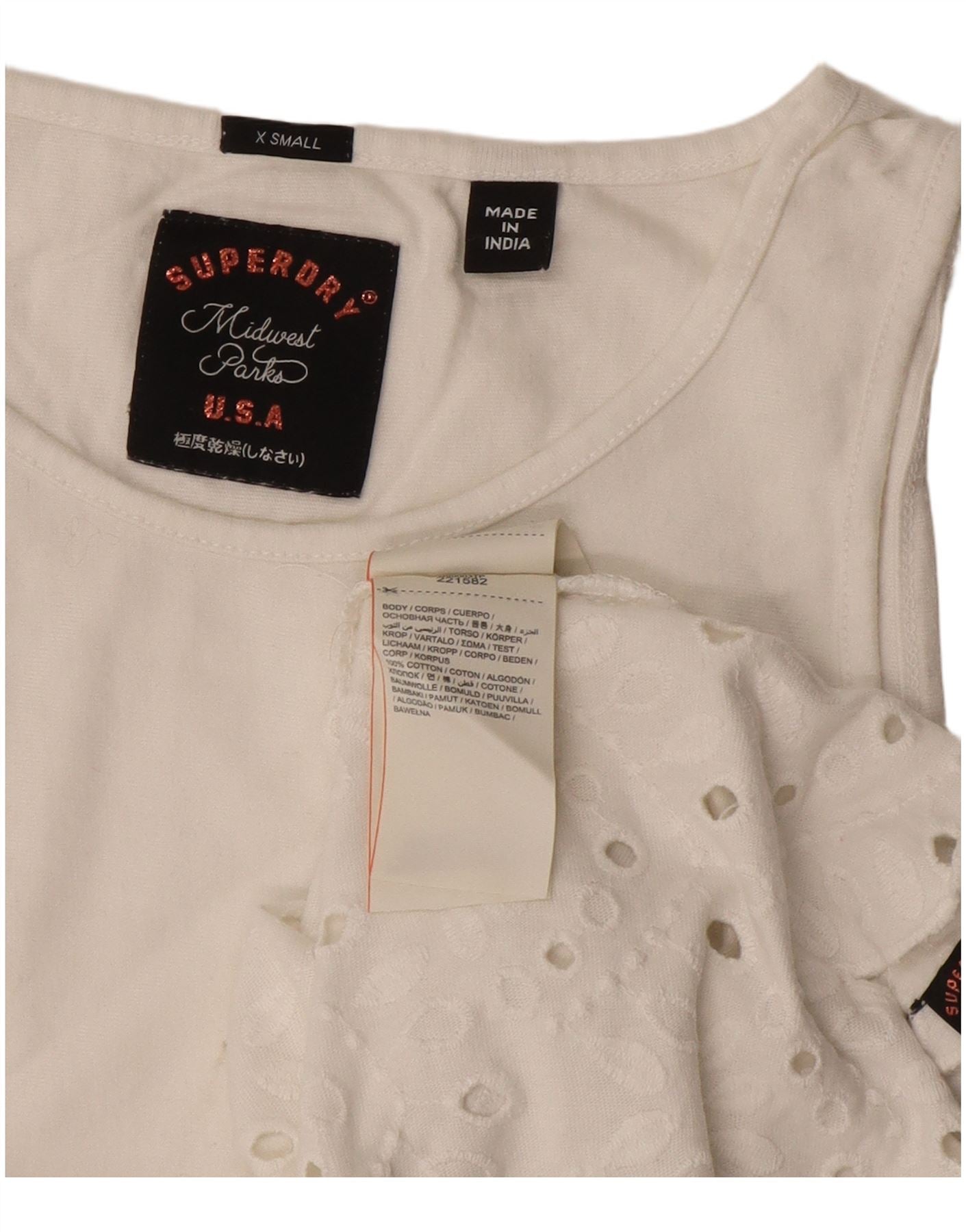 Damski T-shirt Superdry o regularnym kroju, UK 6 XS, bawełna w kolorze złamanej bieli