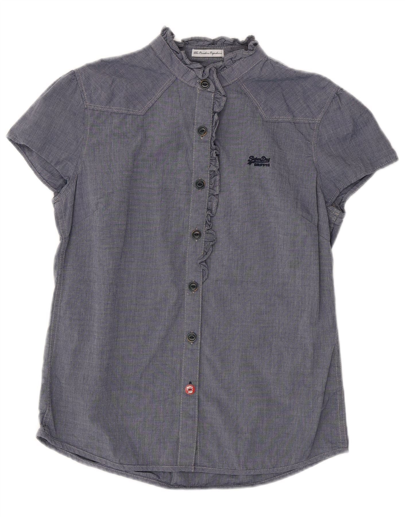 Damska bluzka koszulowa SUPERDRY z falbaną z przodu UK 12, średni granat