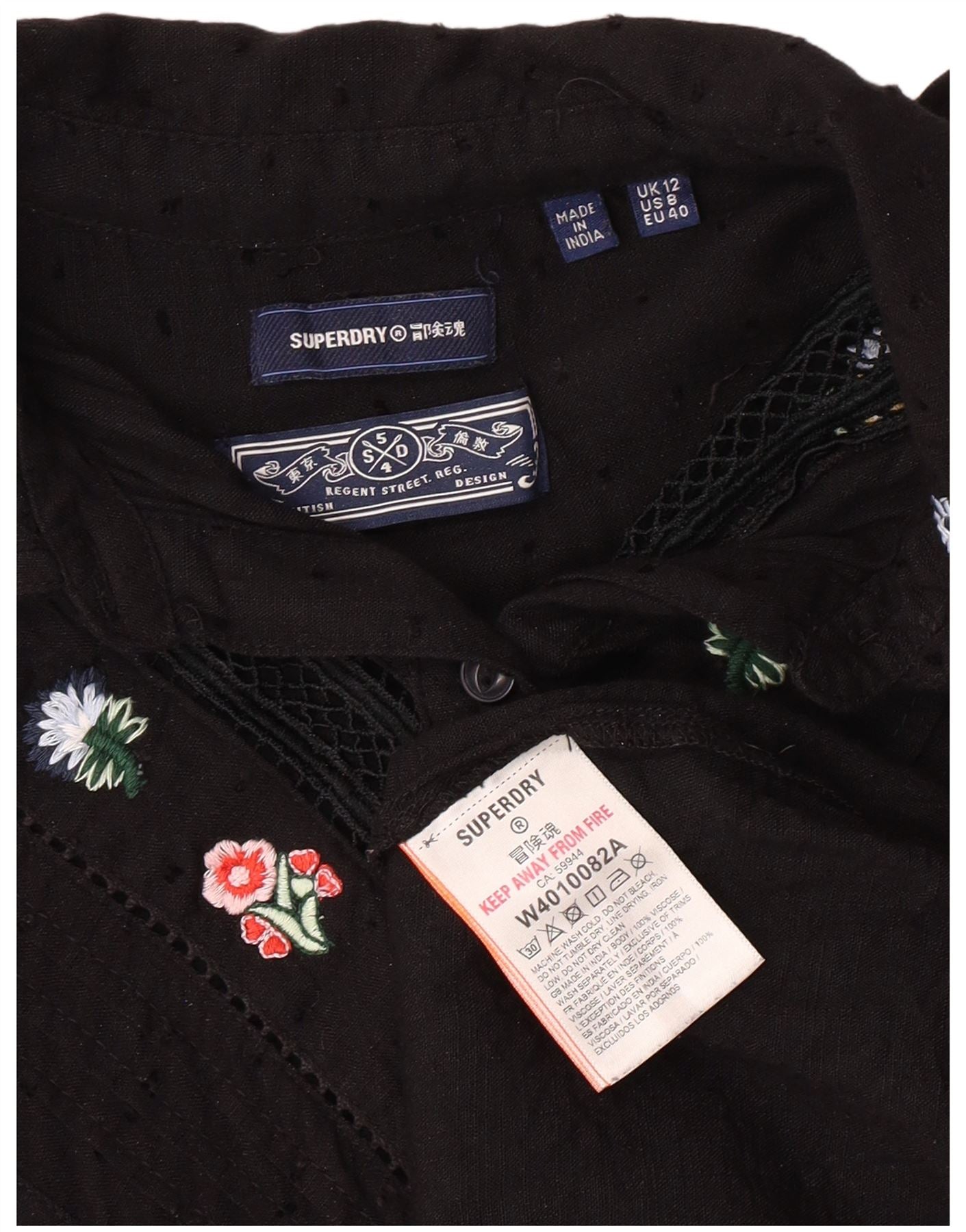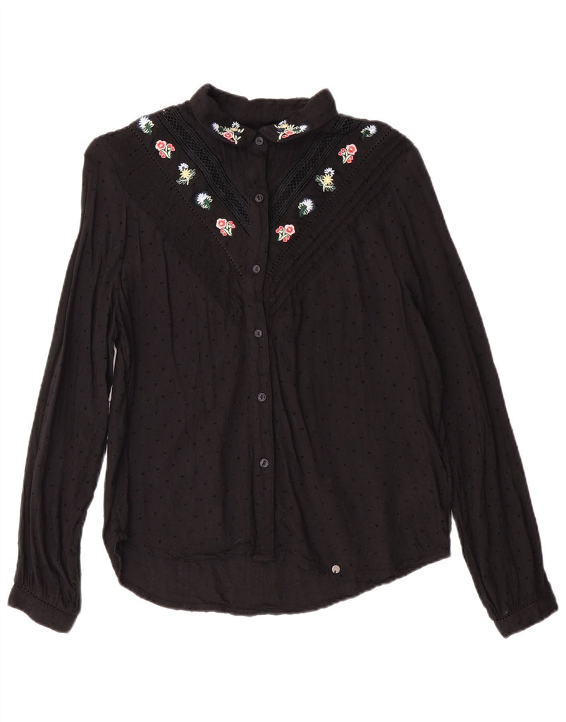 Damska bluzka koszulowa SUPERDRY UK 12 Średnia czarna wiskoza w kwiaty
