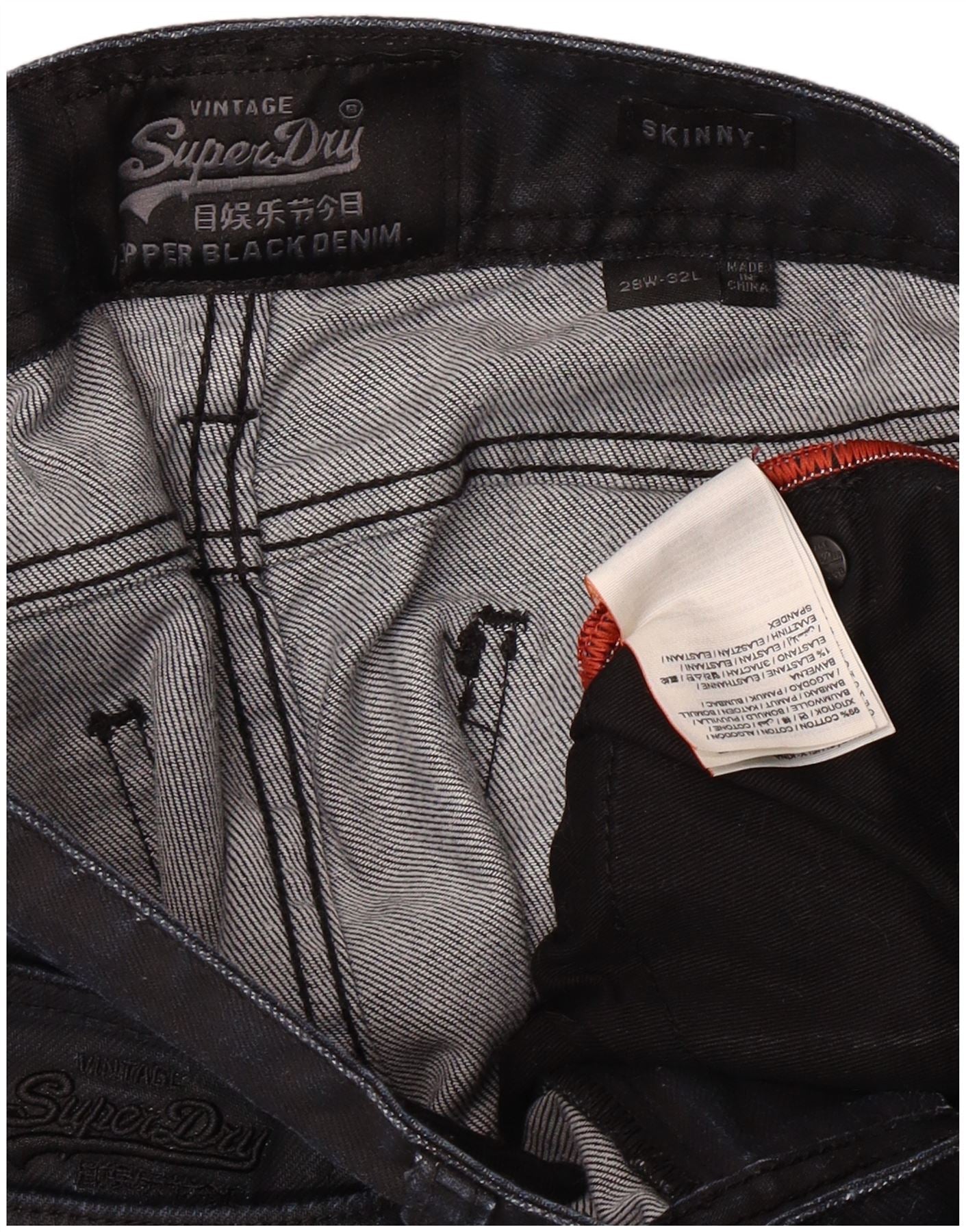 Damskie jeansy skinny Superdry W28 L32, czarne, bawełniane, klasyczne