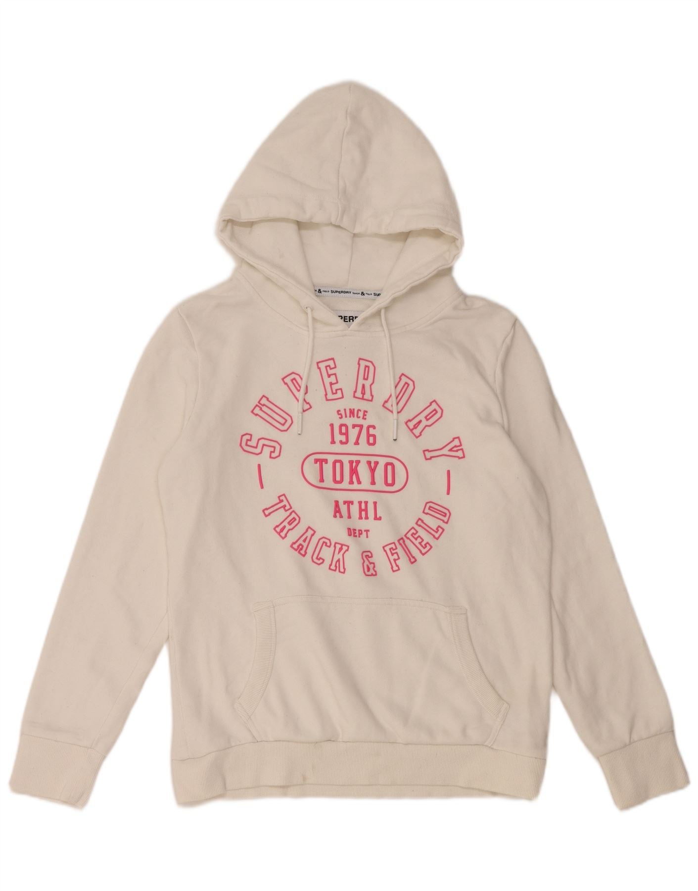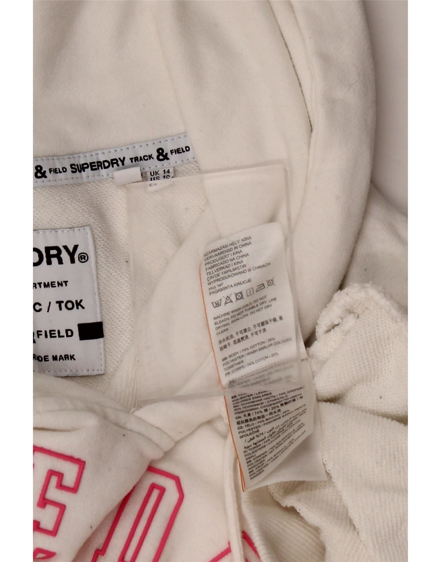Damska bluza z kapturem SUPERDRY do lekkoatletyki z grafiką UK 14, duża w kolorze złamanej bieli