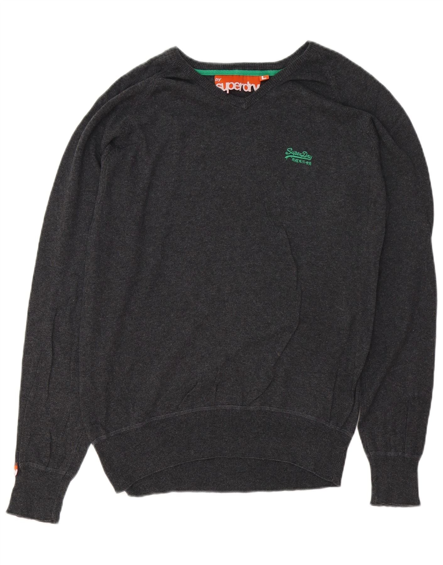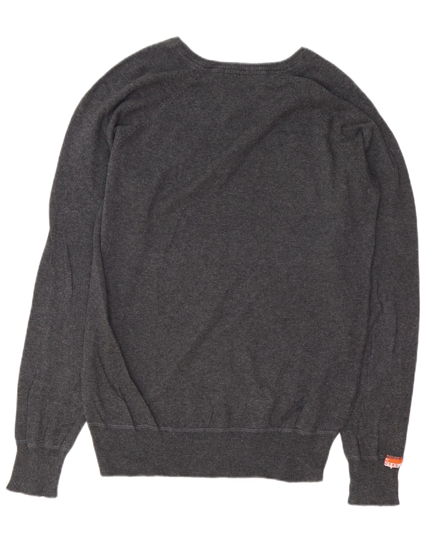 SUPERDRY Damski sweter z dekoltem w kształcie litery V, UK 16, duży, szary, bawełniany