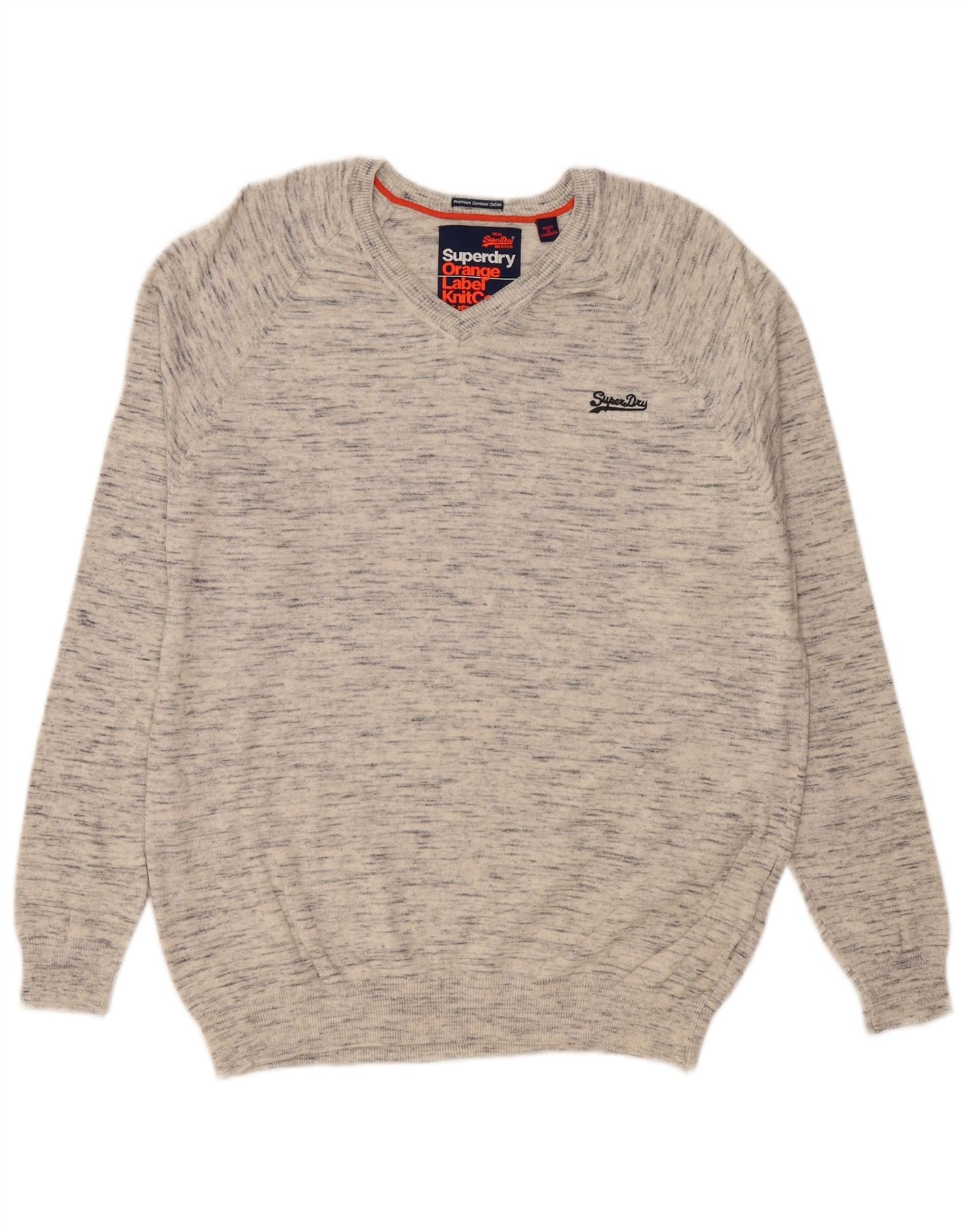 SUPERDRY Damski sweter z dekoltem w kształcie litery V, UK 18 XL, szara bawełna w plamki
