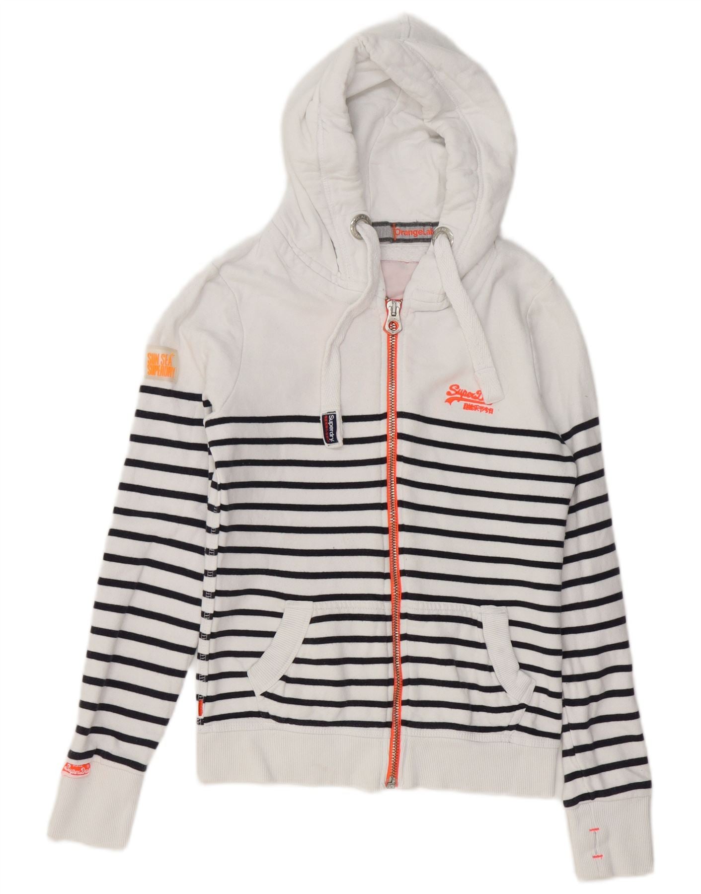SUPERDRY Damski sweter z kapturem i zamkiem UK 6 XS, bawełniany w białe paski