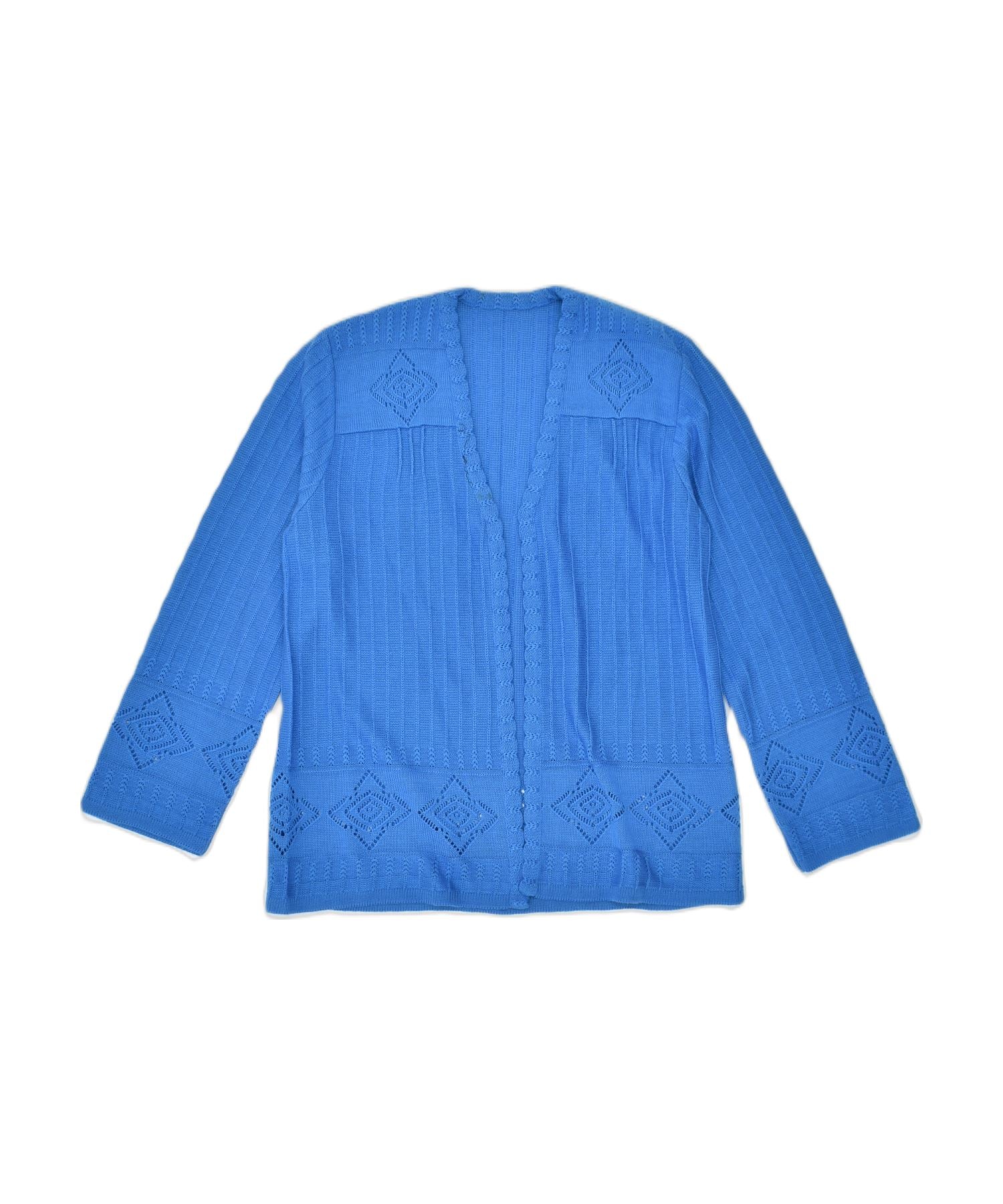 Sweter damski VINTAGE z otwartym kardiganem UK 12 Średni niebieski, bawełniany klasyk