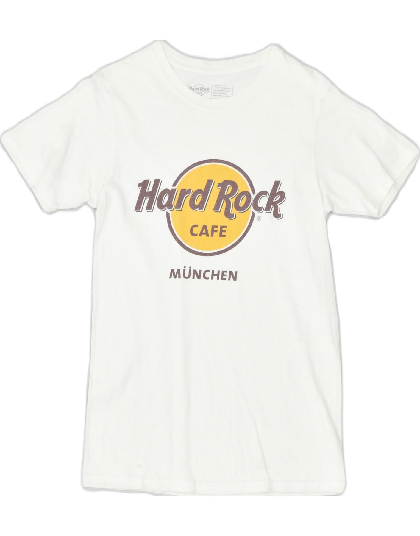 T-shirt damski HARD ROCK CAFE Monachium z grafiką Top UK 6 XS, biała bawełna