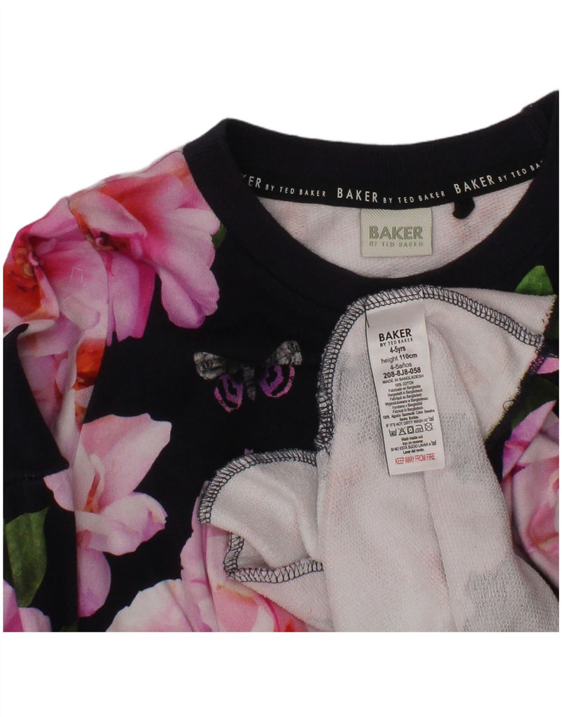 TED BAKER Dziewczęca graficzna sukienka o linii A 4-5 lat Granatowa w kwiaty