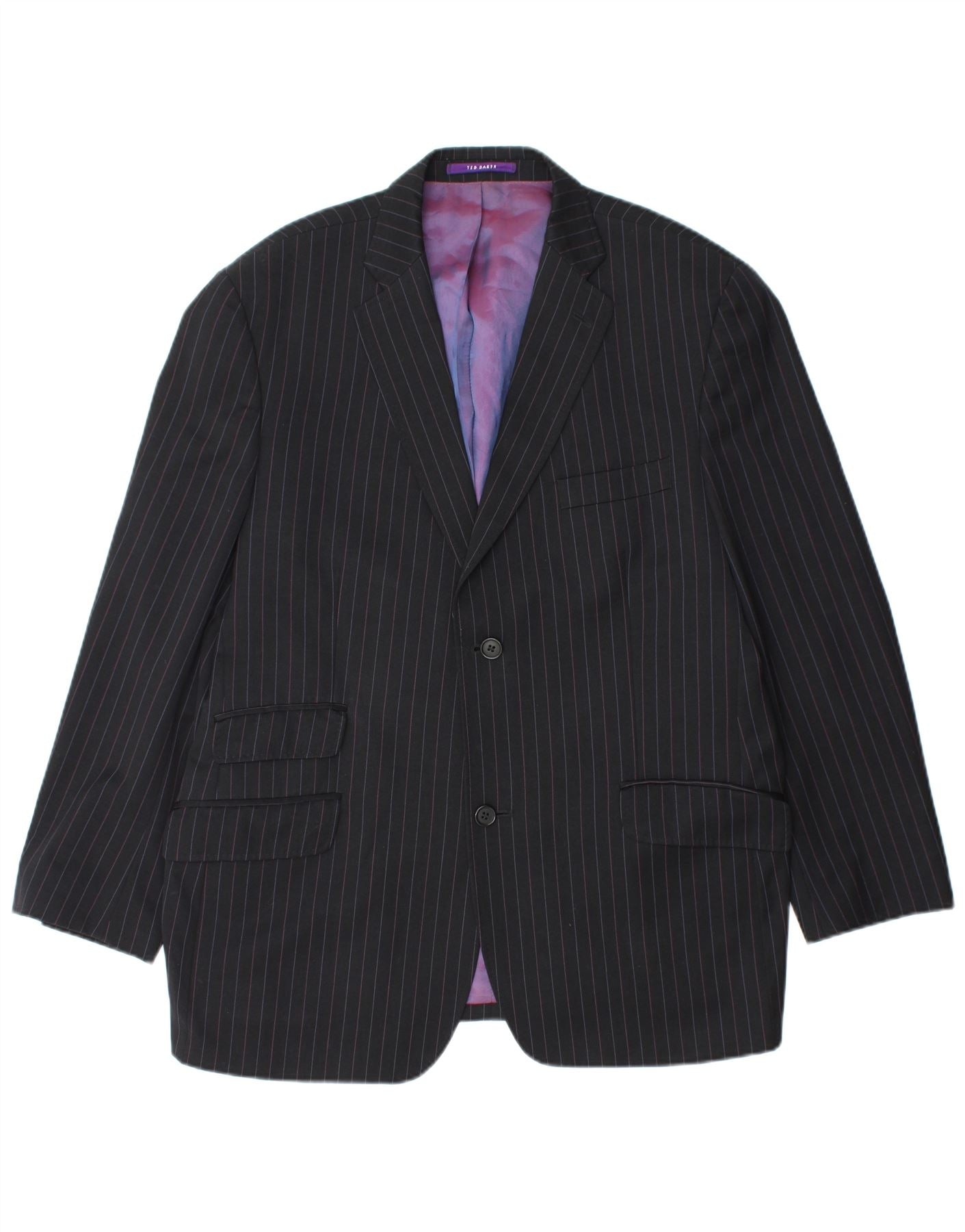 TED BAKER Męska marynarka zapinana na 2 guziki UK 44 2XL Czarna wełniana w prążki