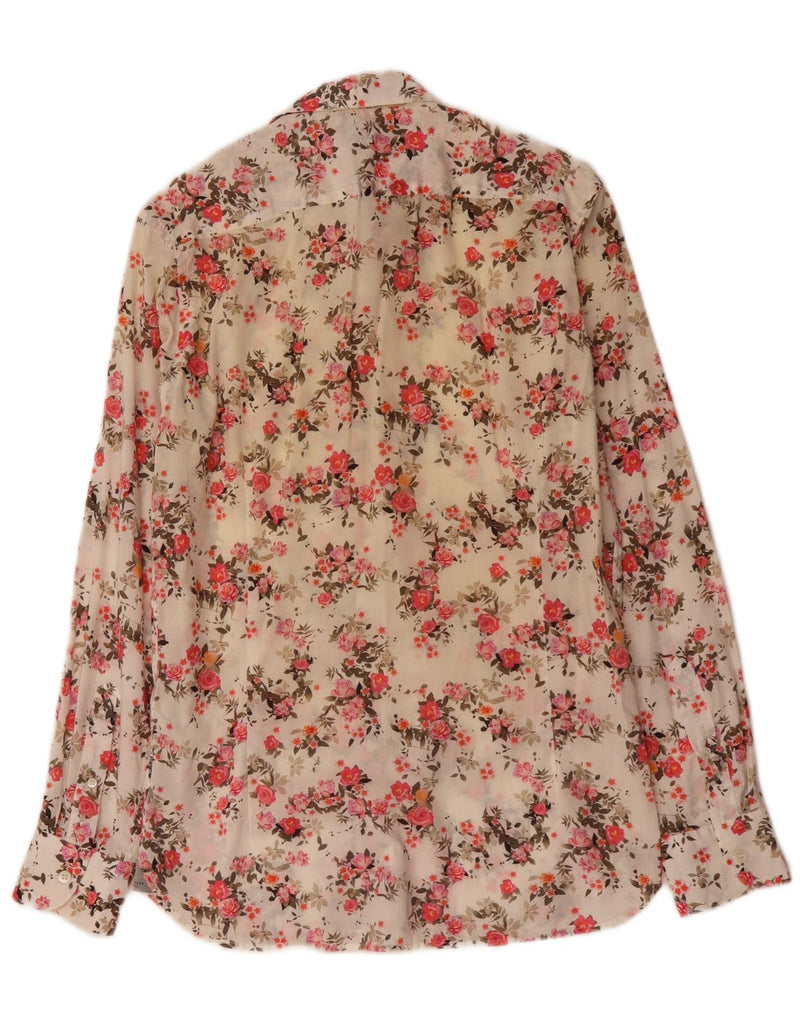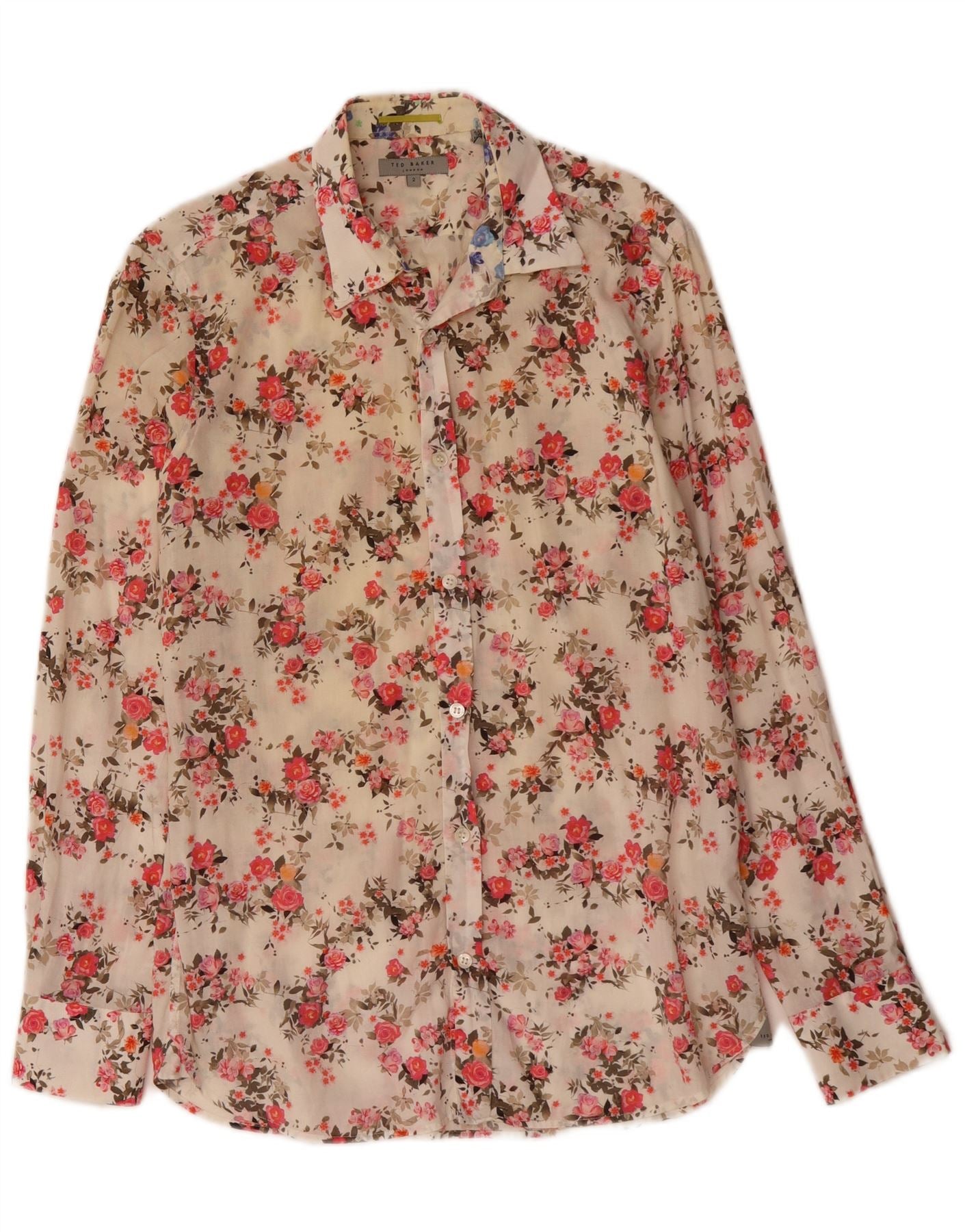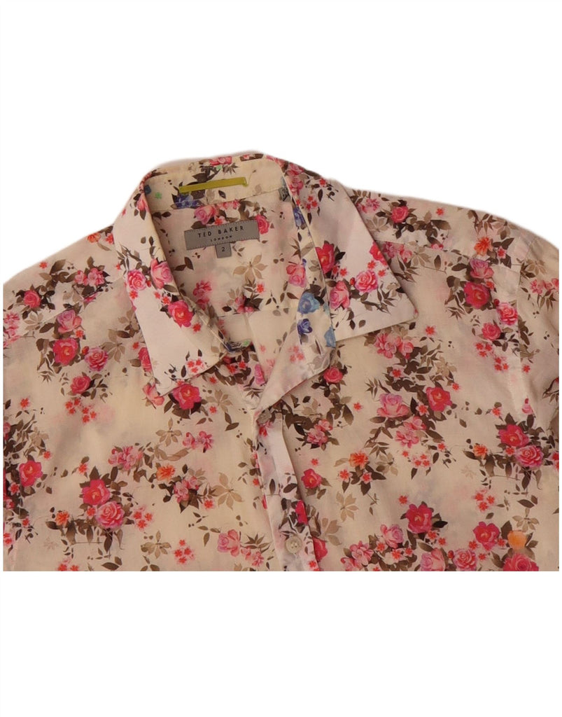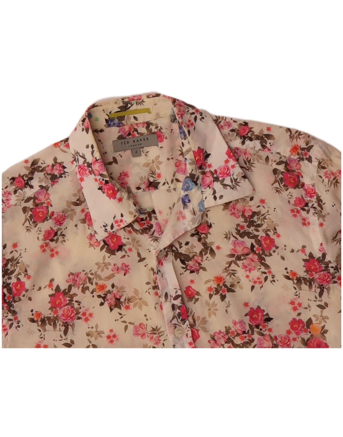 TED BAKER Mens Shirt Size 2 Small Off White Floral Cotton