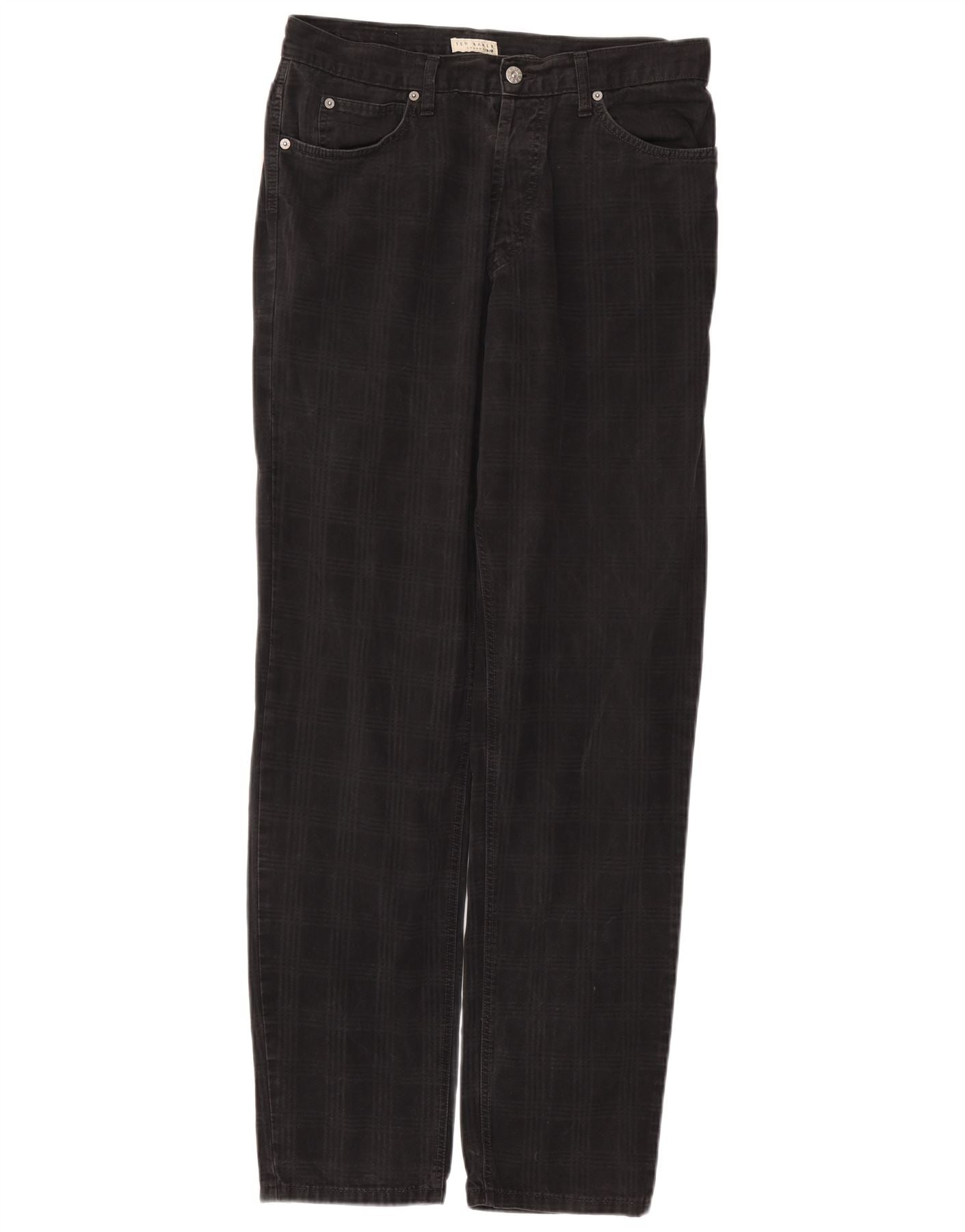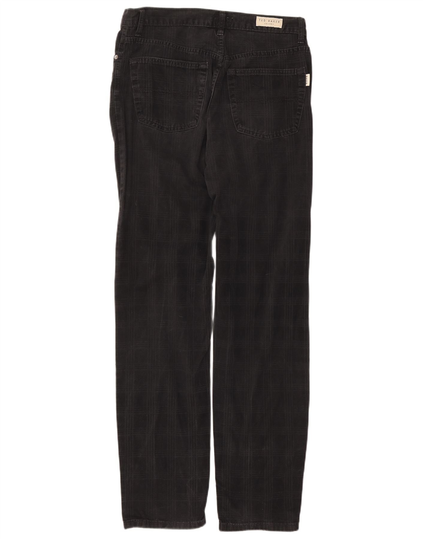 TED BAKER Mens Straight Casual Trousers W34 L33 Black Check Cotton