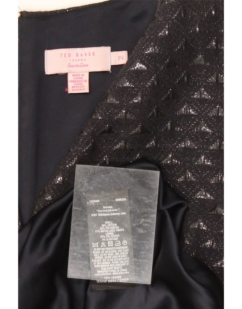 TED BAKER Womens A-Line Dress Size 2 Small Black Geometric Cotton