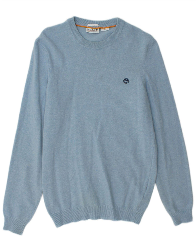 TIMBERLAND Męski sweter z okrągłym dekoltem, mały, niebieski, z wełny merynosów