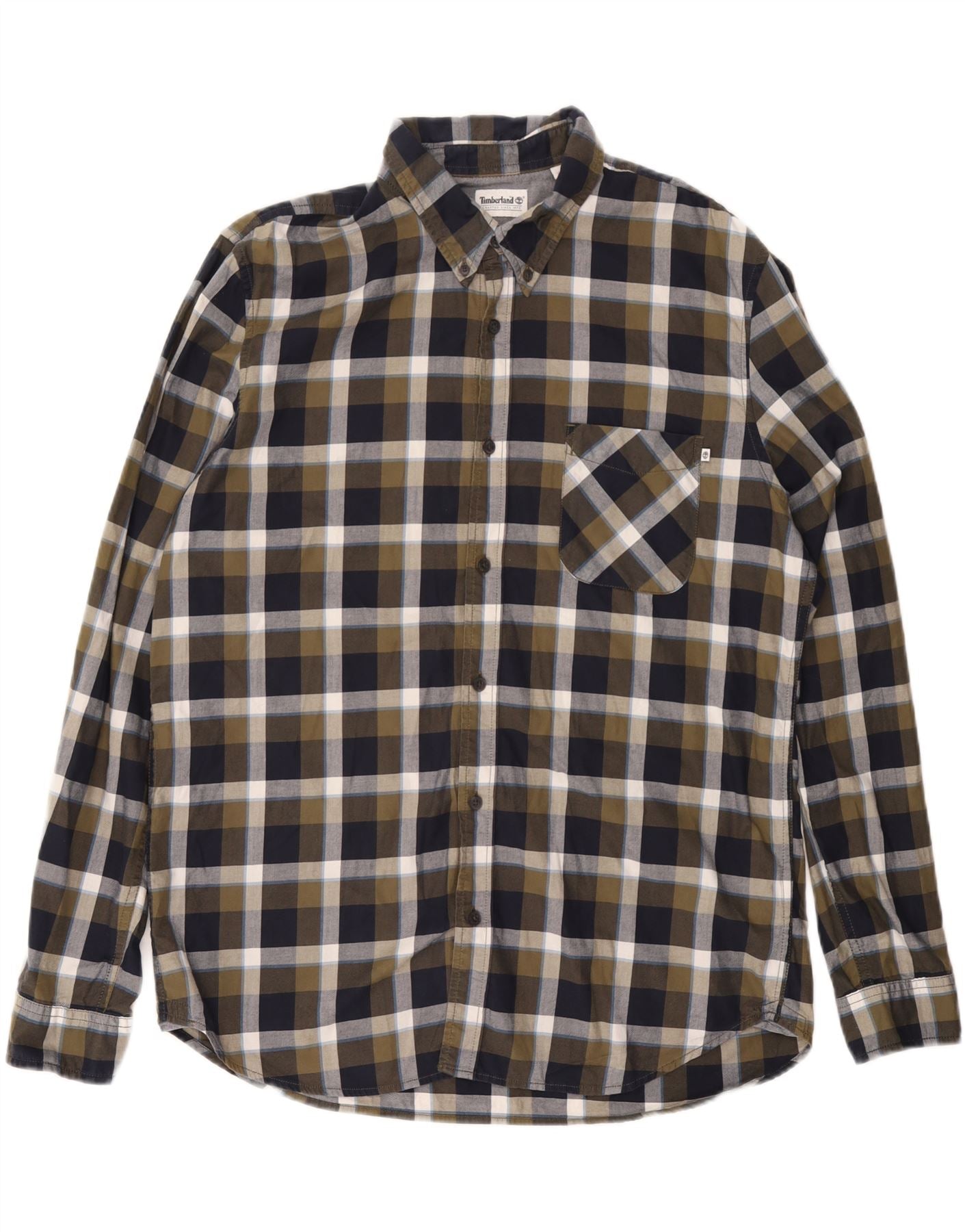 TIMBERLAND Męska koszula flanelowa o dopasowanym kroju XL, khaki, bawełniana w kratkę