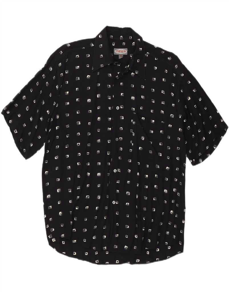 Koszula męska z krótkim rękawem TIPO, średnia czarna geometryczna wiskoza