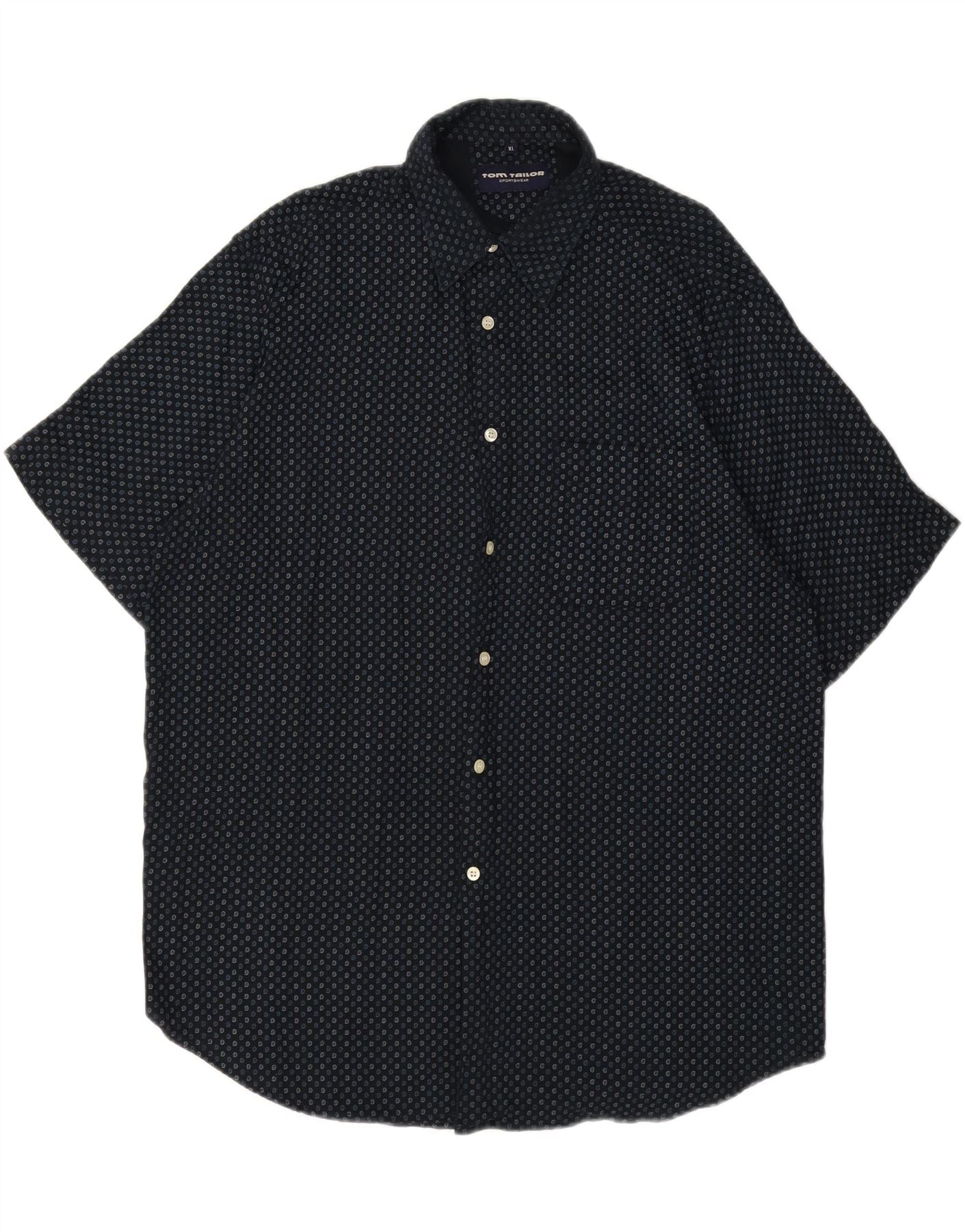 TOM TAILOR Mens Short Sleeve Shirt XL Navy Blue Spotted Cotton