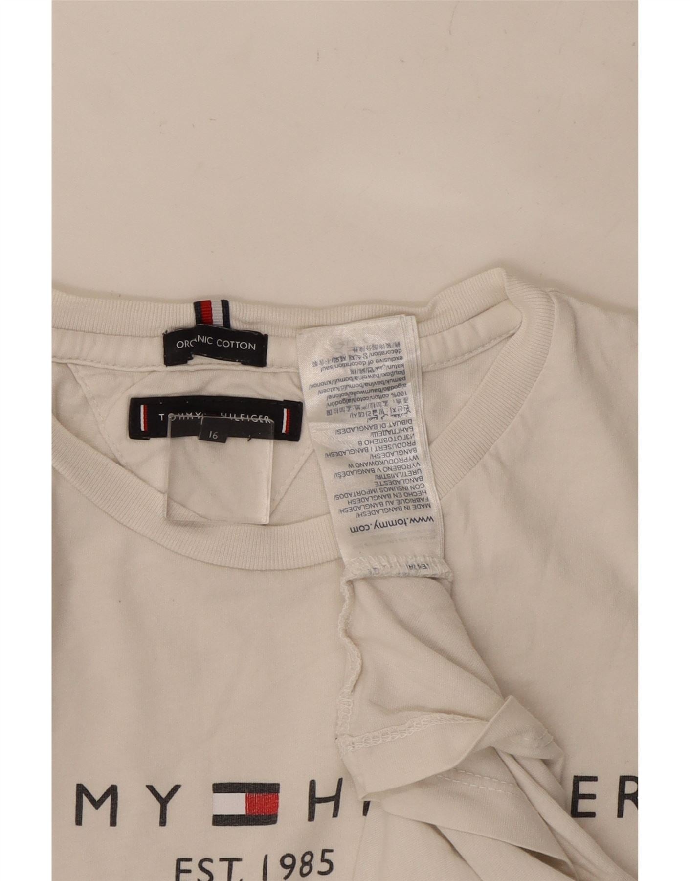 TOMMY HILFIGER Chłopięcy T-shirt z grafiką, 15-16 lat, biała bawełna