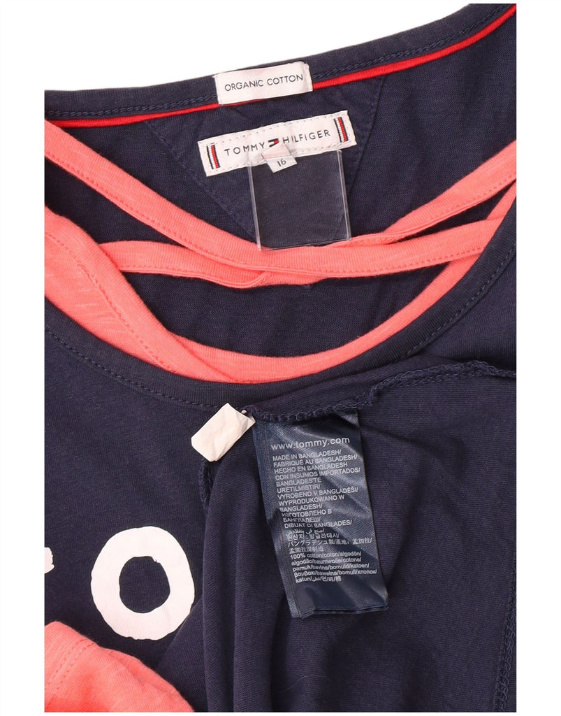 TOMMY HILFIGER Girls Graphic T-Shirt Dress 15-16 Years Navy Blue