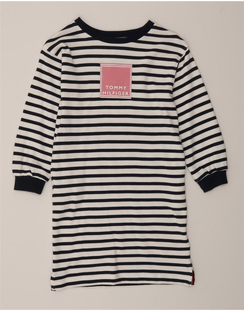 TOMMY HILFIGER Girls Long Sleeve Jumper Dress 5-6 Years Black Striped