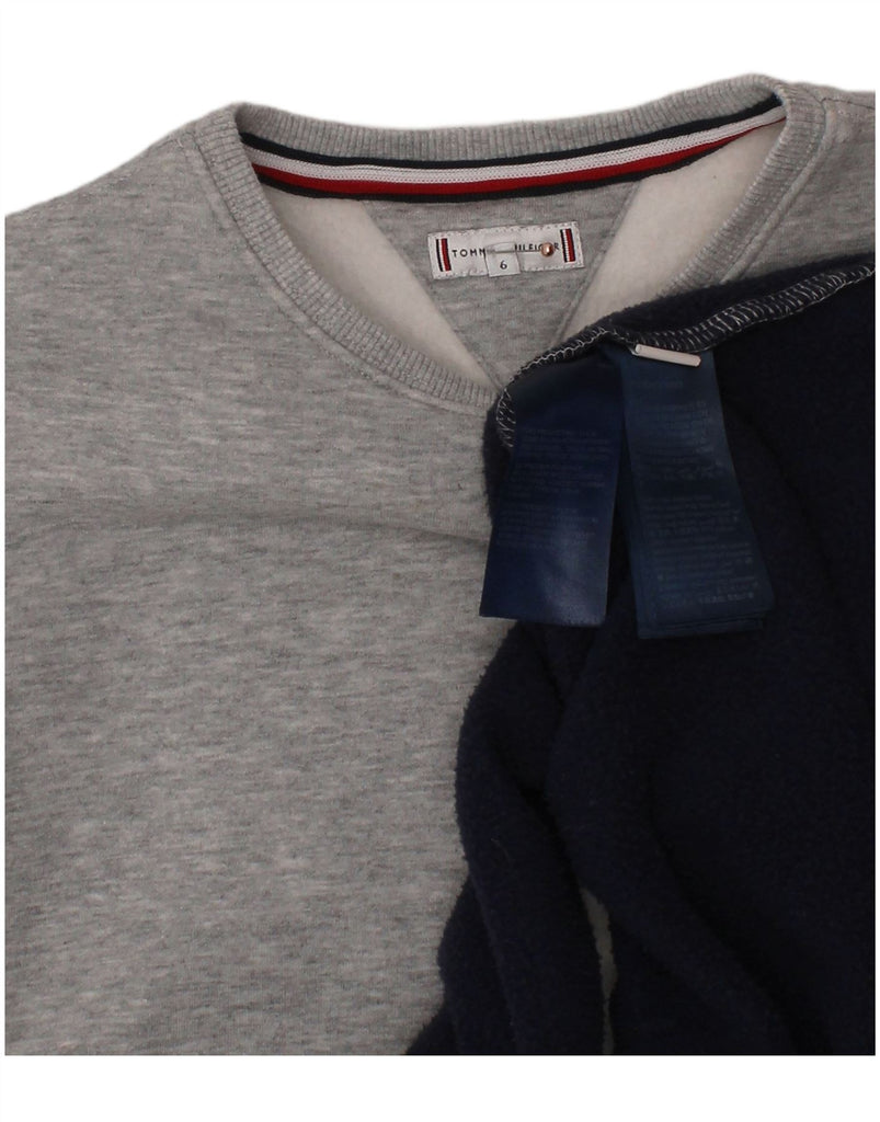 TOMMY HILFIGER Dziewczęca bluza dresowa, sukienka 5-6 lat, szara, z blokami kolorów