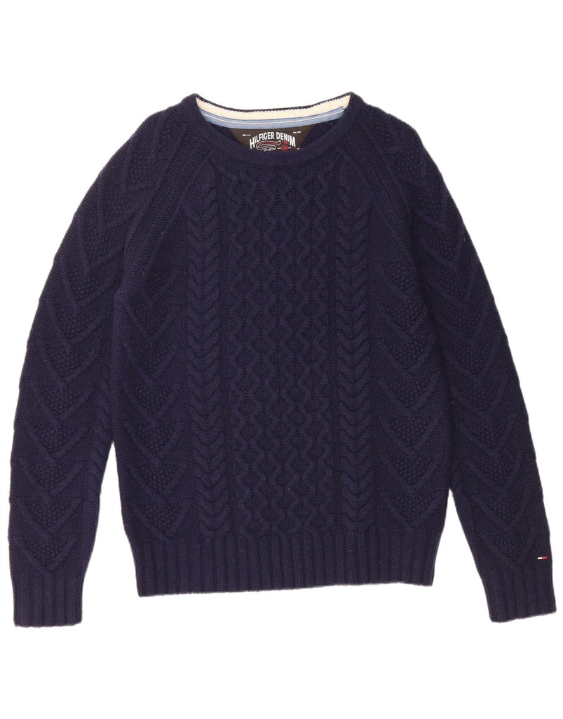 TOMMY HILFIGER Męski sweter z dekoltem w łódkę, średni granat, wełna owcza