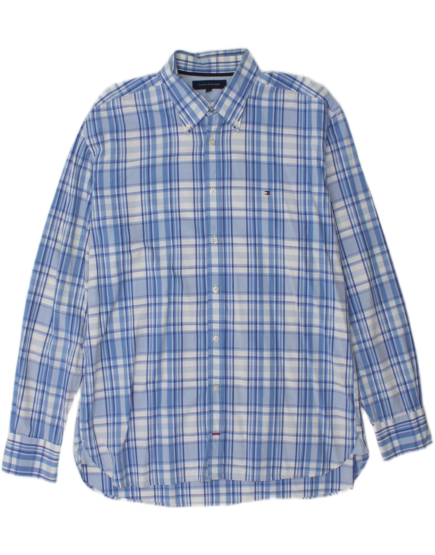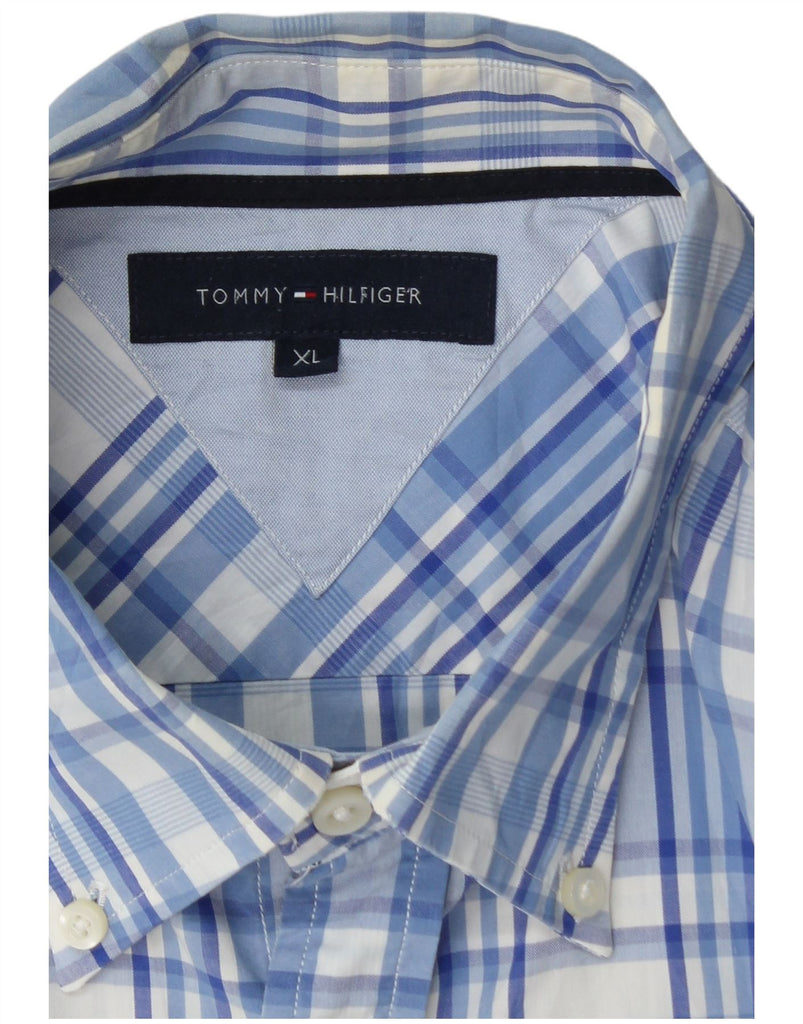 Męska koszula w kratę TOMMY HILFIGER XL, niebieska, bawełniana w kratkę