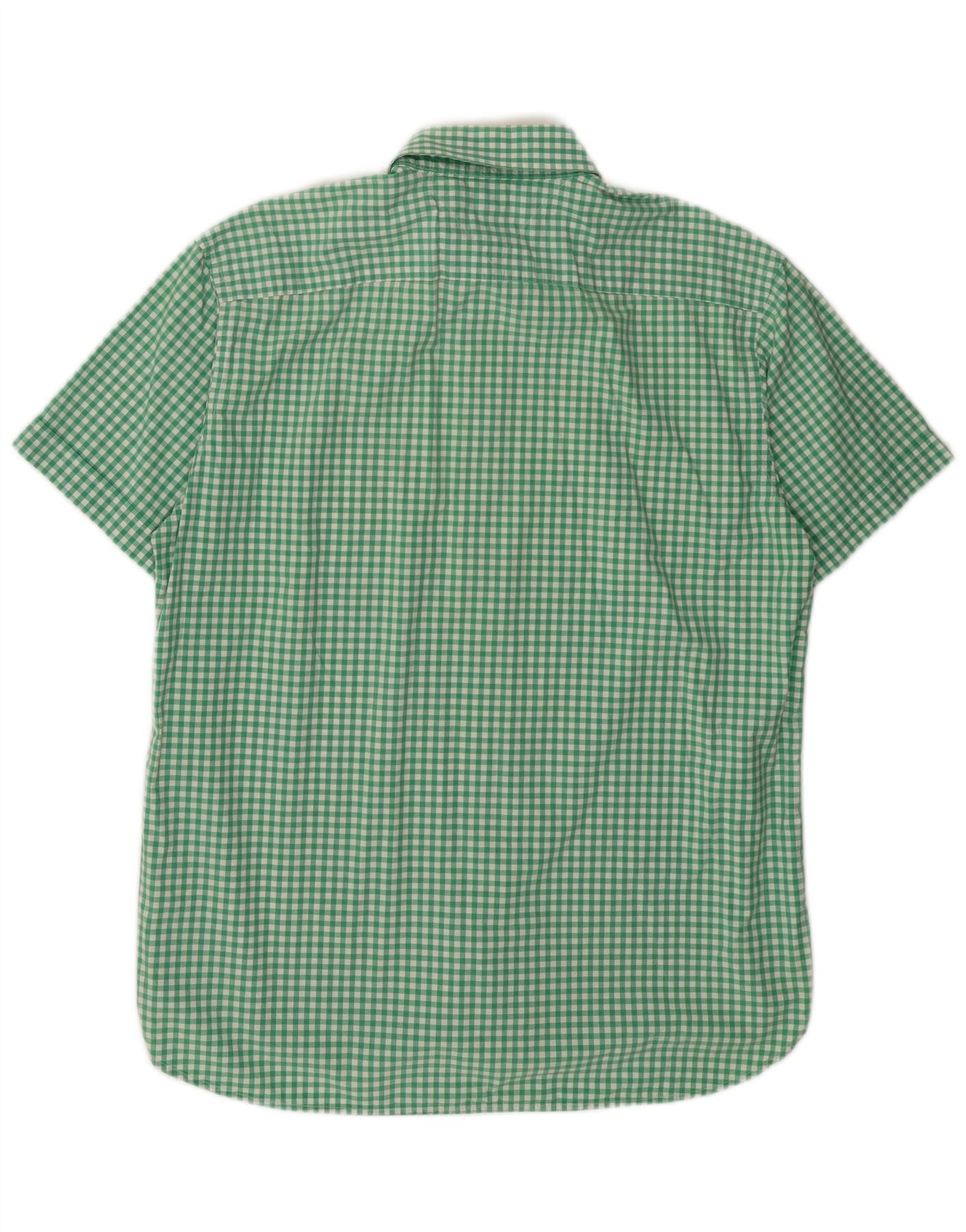 Męska koszula z krótkim rękawem w kratkę Tommy Hilfiger XL, zielona bawełniana kratka