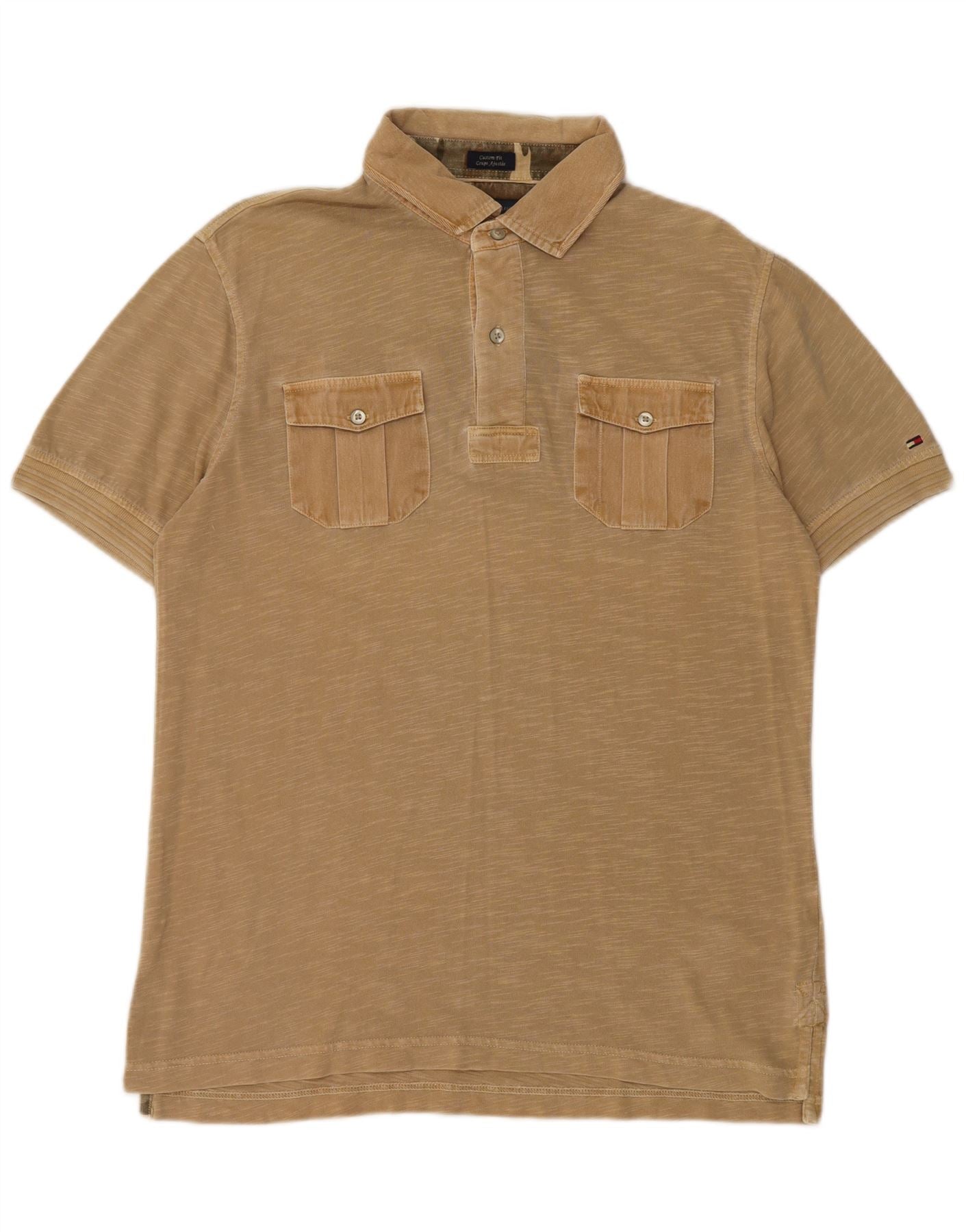 TIPO' S Mens Short Sleeve Shirt Large Beige Geometric Viscose