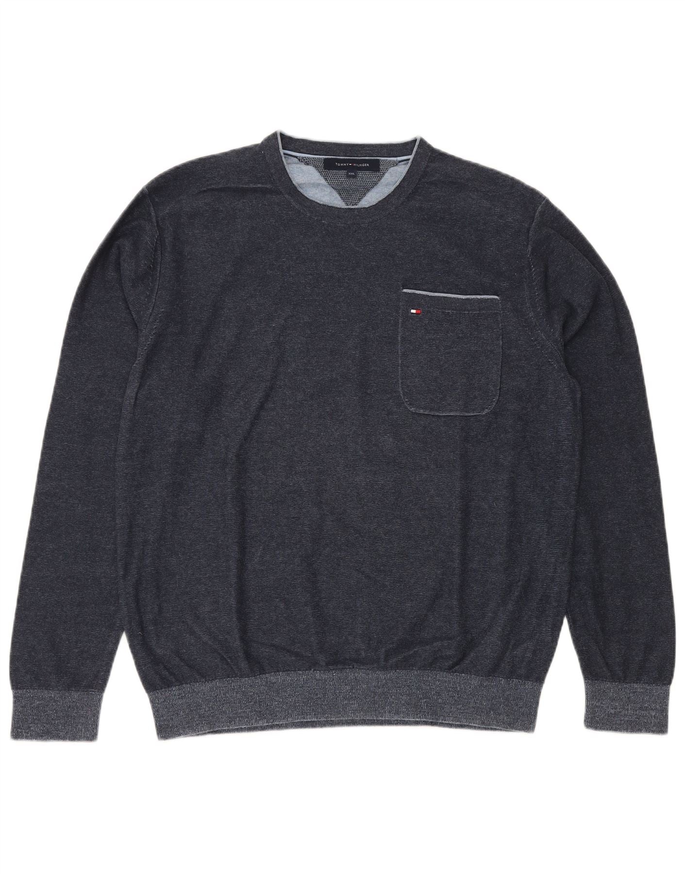 Męski sweter z okrągłym dekoltem TOMMY HILFIGER 2XL, granatowa, bawełniana