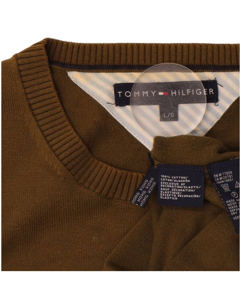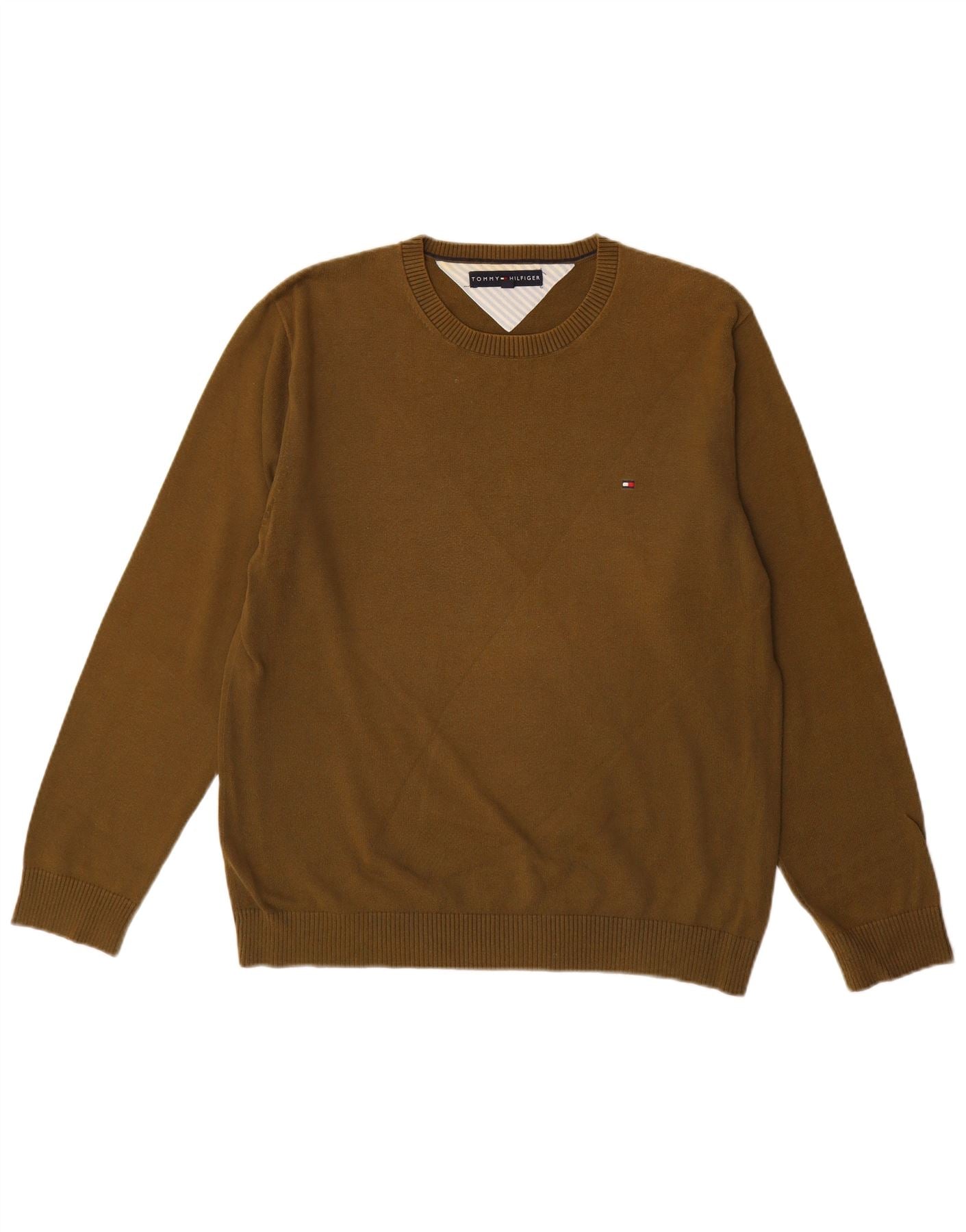 TOMMY HILFIGER Mens Crew Neck Jumper Sweater Large Brown Cotton